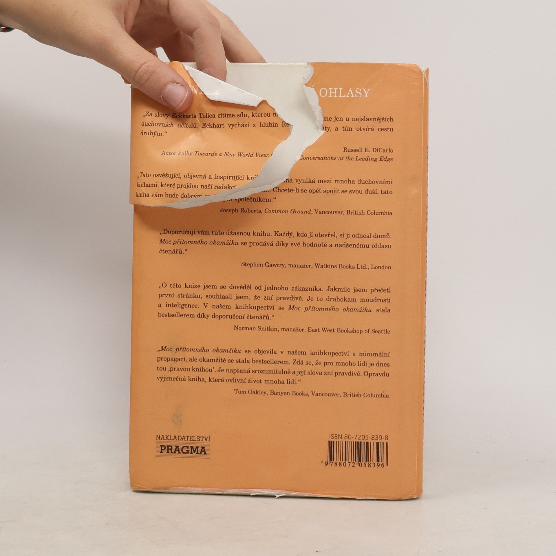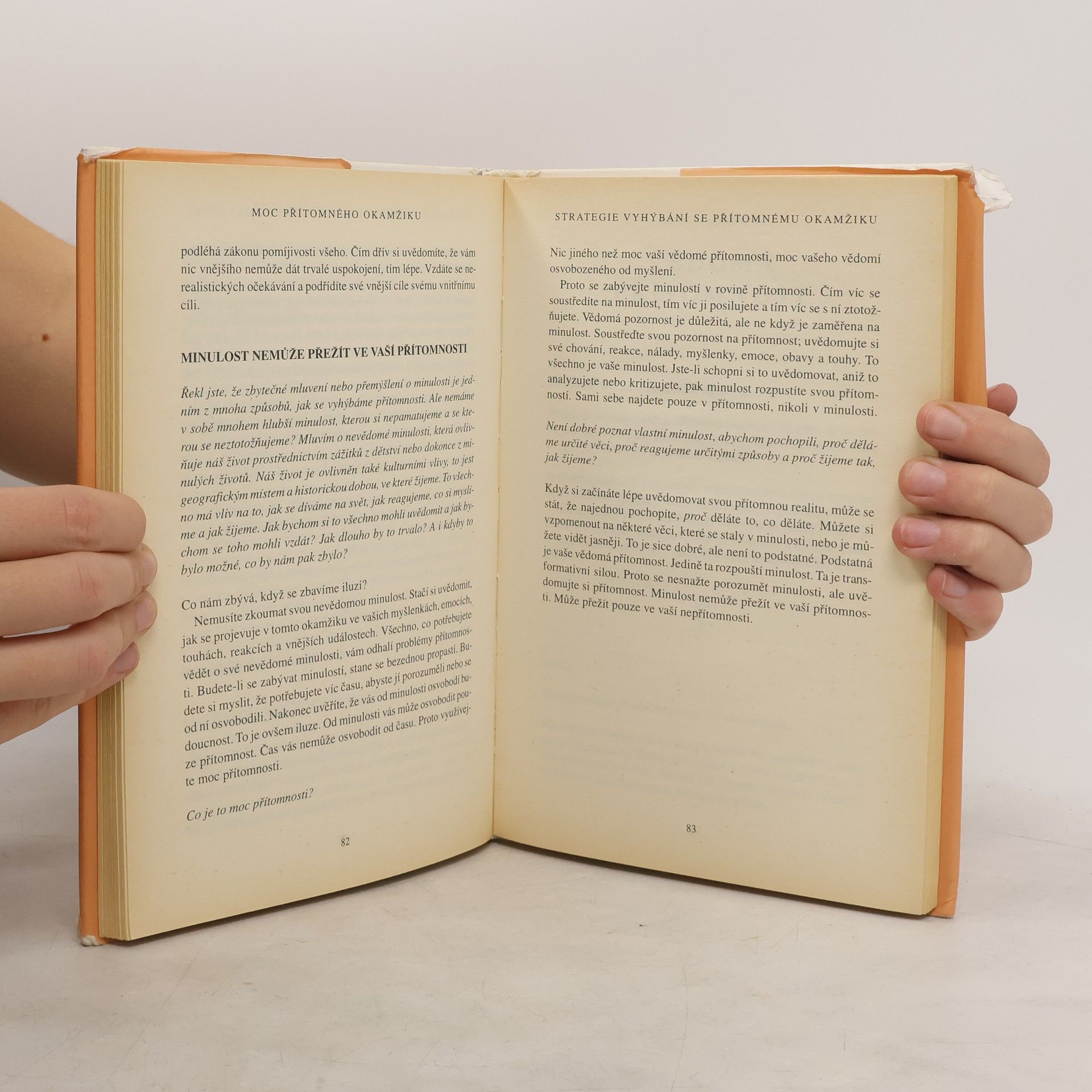 Při čtení této knihy mnoho z nás učiní nové objevy: nejsme svou myslí; můžeme se zbavit duševní bolesti; najdeme, jakmile se vzdáme přítomnému okamžiku. Dovíme se také, že jedním z klíčů k dosažení vnitřního klidu je naše tělo, stejně jako ticho a prostor kolem nás. To jsou brány, jimiž můžeme vstoupit do přítomnosti, kde neexistují žádné problémy. V přítomném okamžiku najdeme své skutečné já a hlubokou vnitřní radost. Pouze v přítomném okamžiku si uvědomíme, že už jsme úplní a dokonalí. Mnoho z nás zjistí, že naší největší překážkou na cestě k tomuto poznání jsou naše partnerské vztahy. Vstupujeme do ,,nového teritoria" a nic není takové, jak se nám to dosud jevilo. Pochopíme, že naše partnerské vztahy mohou být další branou k duchovnímu osvícení, pokud jich budeme užívat moudře, to jest k tomu, abychom se stali víc milujícími. Výsledek? Skutečné spojení mezi naším já a druhými lidmi. Naučíme-li se žít v přítomném okamžiku, budeme-li vnímat realitu ,,neviditelného Bytí" a svého ,,vnitřního těla", otevřeme se transformujícímu poznání, jež nám poskytuje tato kniha.