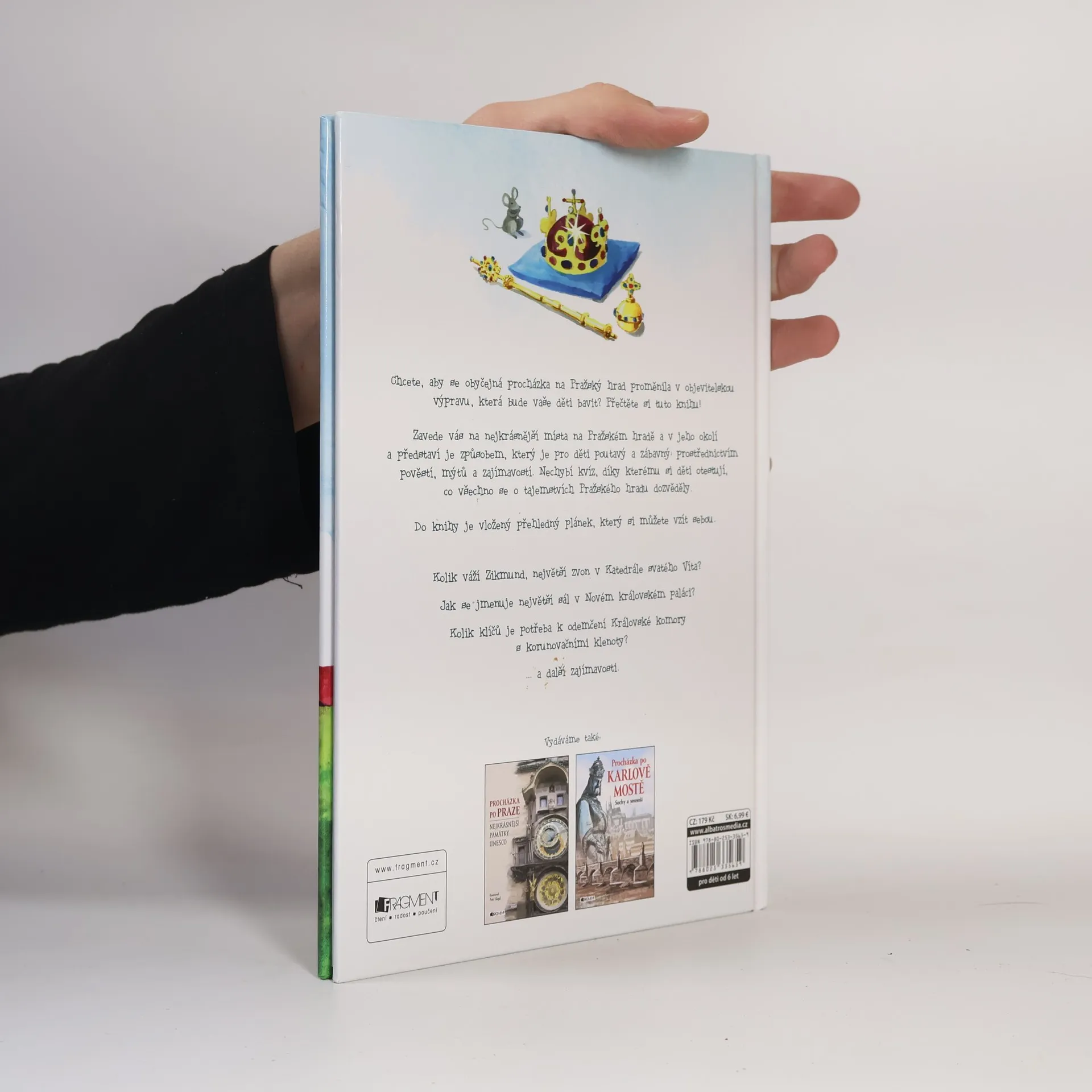 Chcete, aby se obyčejná procházka na Pražský hrad proměnila v objevitelskou výpravu, která bude vaše děti bavit? Přečtěte si tuto knihu! Zavede vás na nejkrásnější místa na Pražském hradě a v jeho okolí a představí je způsobem, který je pro děti poutavý a zábavný: prostřednictvím pověstí, mýtů a zajímavostí. Nechybí kvíz, díky kterému si děti otestují, co všechno se o tajemstvích Pražského hradu dozvěděly. Do knihy je vložený přehledný plánek, který si můžete vzít sebou. Kolik váží Zikmund, největší zvon v Katedrále svatého Víta? Jak se jmenuje největší sál v Novém královském paláci? Kolik klíčů je potřeba k odemčení Královské komory s korunovačními klenoty? ... a další zajímavosti