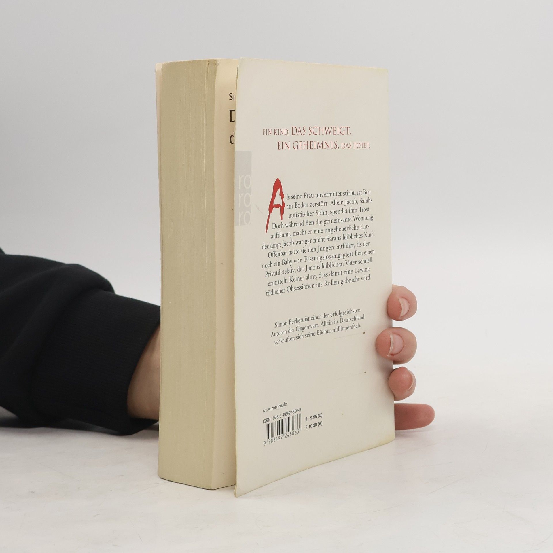 Ein Kind, das schweigt. Ein Geheimnis, das tötet.Als seine Frau unvermutet stirbt, ist Ben am Boden zerstört. Allein Jacob, Sarahs autistischer Sohn, spendet ihm Trost. Doch während Ben die gemeinsame Wohnung aufräumt, macht er eine ungeheuerliche Entdeckung: Jacob war gar nicht Sarahs leibliches Kind. Offenbar hatte sie den Jungen entführt, als der noch ein Baby war. Fassungslos engagiert Ben einen Privatdetektiv, der Jacobs leiblichen Vater schnell ermittelt. Keiner ahnt, dass damit eine Lawine tödlicher Obsessionen ins Rollen gebracht wird. Simon Beckett ist einer der erfolgreichsten Autoren der Gegenwart. Allein in Deutschland verkauften sich seine Bücher millionenfach.
