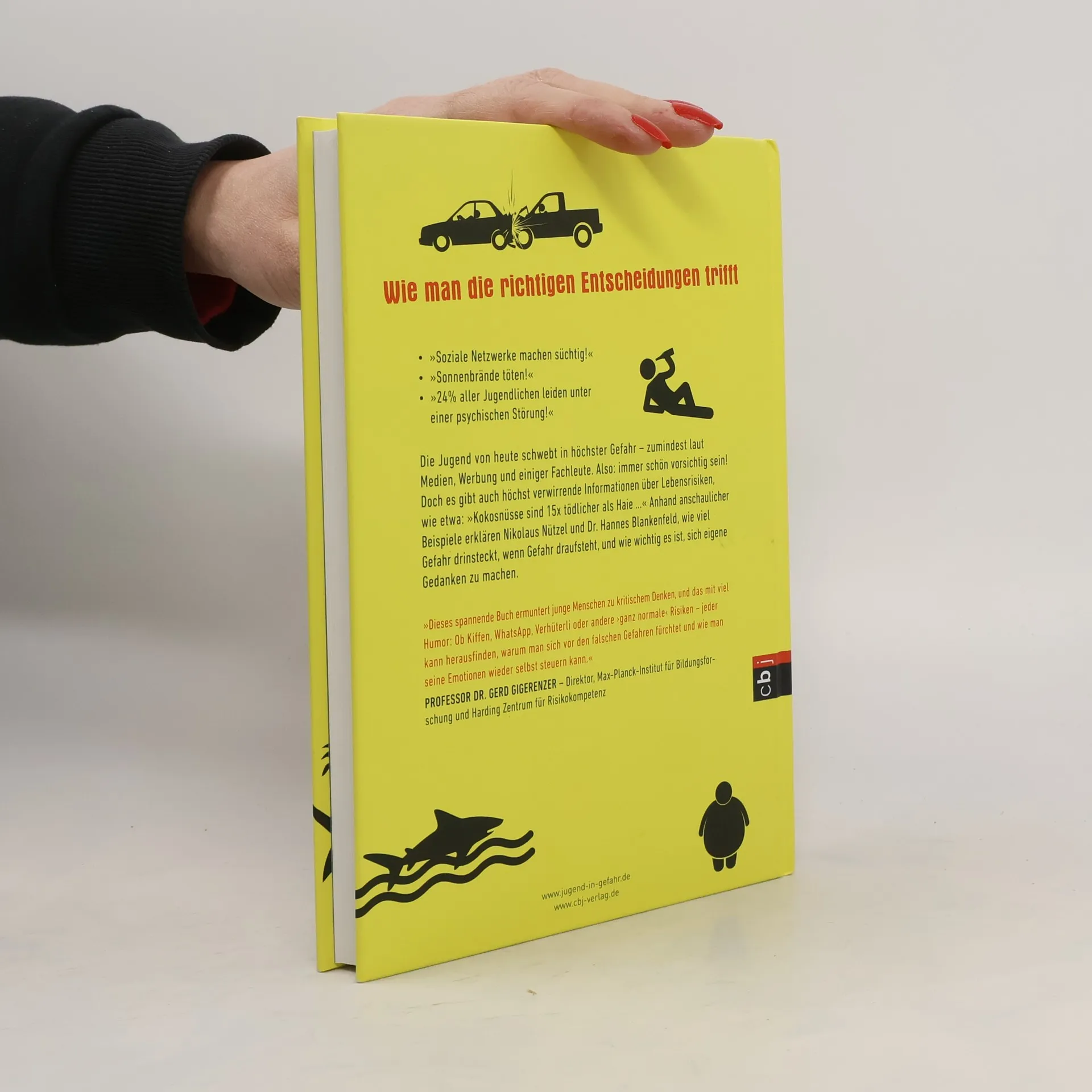 »Soziale Netzwerke machen süchtig!« – »24 % aller Jugendlichen leiden unter einer psychischen Störung!« – »Sonnenbrände töten!« Die Jugend von heute schwebt in höchster Gefahr – zumindest laut Medien, Werbung und einiger Fachleute. Also: Immer schön vorsichtig sein! Doch es gibt auch höchst verwirrende Informationen über Lebensrisiken, wie etwa: »Kokosnüsse sind 15 x tödlicher als Haie …« Anhand anschaulicher Beispiele erklären Nikolaus Nützel und Dr. Hannes Blankenfeld, wie viel Gefahr drinsteckt, wenn Gefahr draufsteht, und wie wichtig es ist, sich eigene Gedanken zu machen. Denn: 100 % Sicherheit gibt es nie. Aber 100 % Vertrauen in die eigene Entscheidungsfähigkeit!