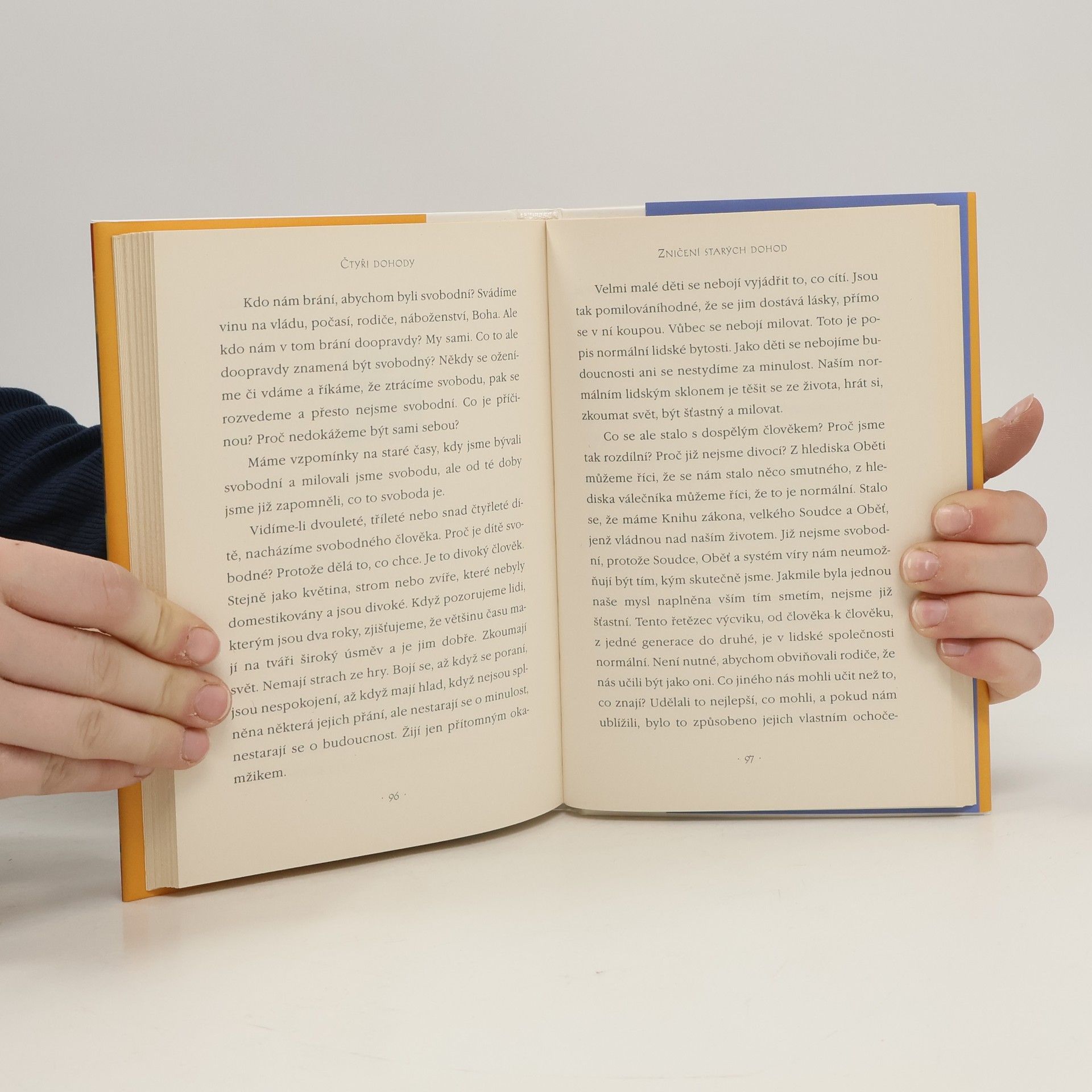Ve Čtyřech dohodách odhaluje don Miguel Ruiz zdroj špatných životních návyků, které nás připravují o radost a vedou ke zbytečnému utrpení. Čtyři dohody, založené na staré toltécké moudrosti, nabízejí nový přístup k vlastnímu vnitru, abychom dokázali proměnit svůj život v prožitek svobody, opravdového štěstí a lásky.