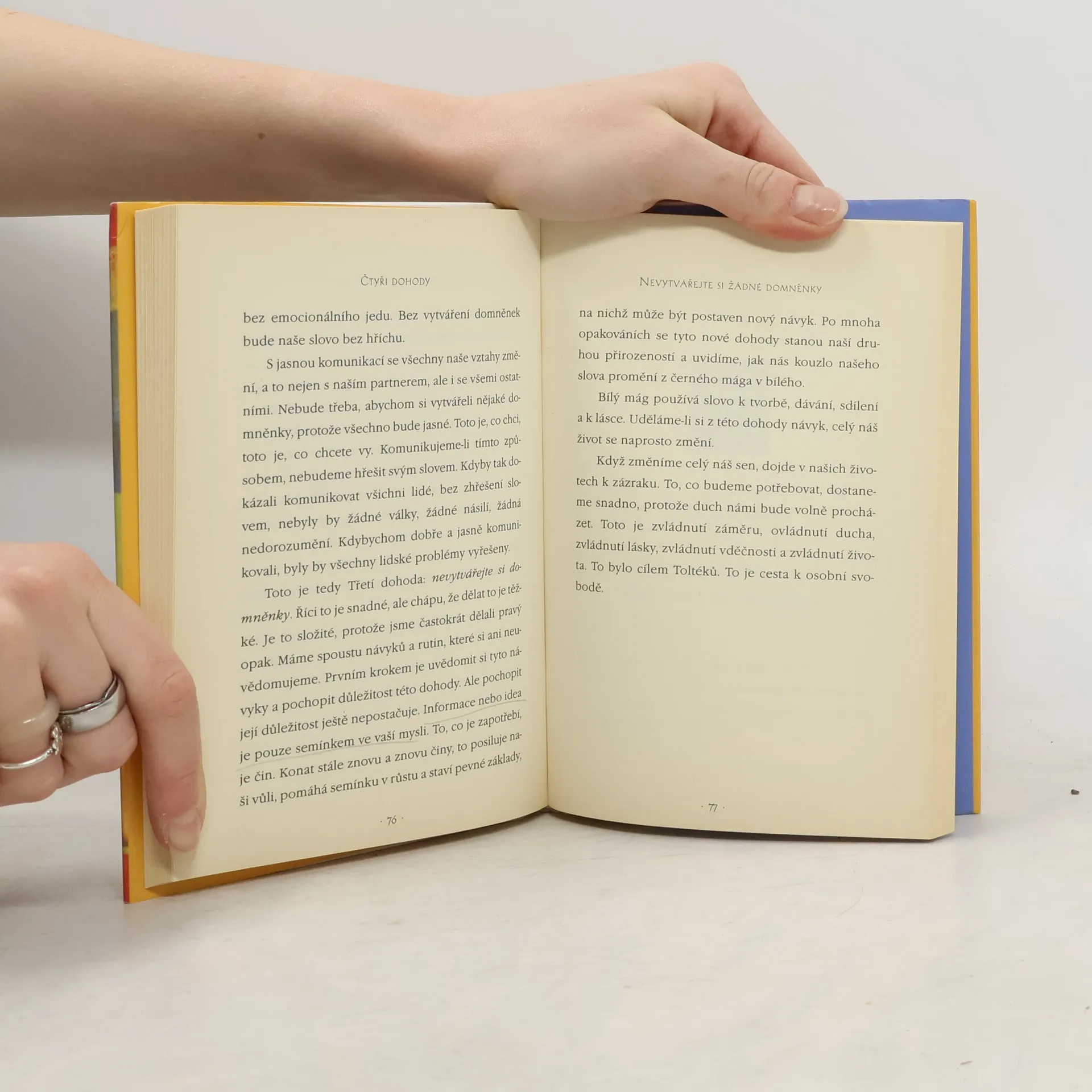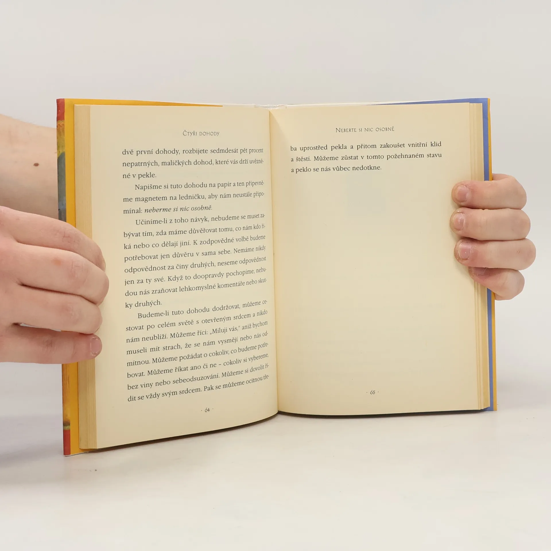 Praktický průvodce osobní svobodou. Ve Čtyřech dohodách odhaluje don Miguel Ruiz zdroj omezujících názorů, které nás připravují o radost a vedou k zbytečnému utrpení. Čtyři dohody, založené na staré toltécké moudrosti, nabízejí silný kód chování, který dokáže rychle proměnit náš život v nový prožitek svobody, opravdového štěstí a lásky.