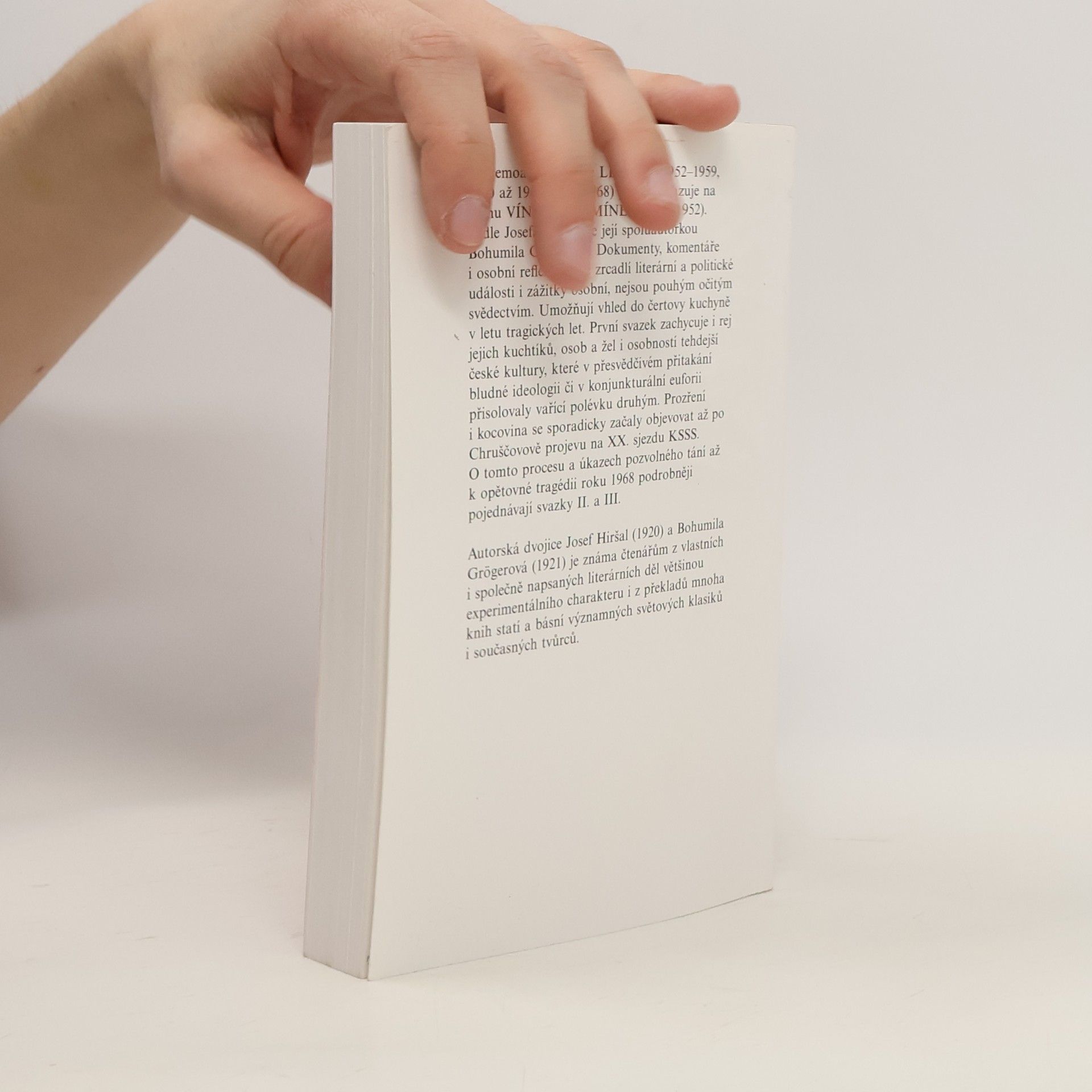 První díl memoárového díla, které patří k nejdůležitějším svědectvím o české kultuře let 1952-1968. Text spojující deníkové zápisy a vzpomínky dvou výjimečných spisovatelů a překladatelů s desítkami básní, próz, dopisů, dokumentů a se stovkami citací z dobového tisku je nejen jedinečným pramenem k poznání české literatury a výtvarného umění daného dvacetiletí, ale i strhujícím beletristickým dvojhlasem, skutečným literárním skvostem. Kniha podrobně zachycuje nejen českou kulturu padesátých let, ale též bohatou kulturní výměnu mezi experimentujícími autory z Čech, Německa, Rakouska, Brazílie a dalších zemí v letech šedesátých, která jsou zde zachycena s mimořádnou detailností a působivostí.... celý text