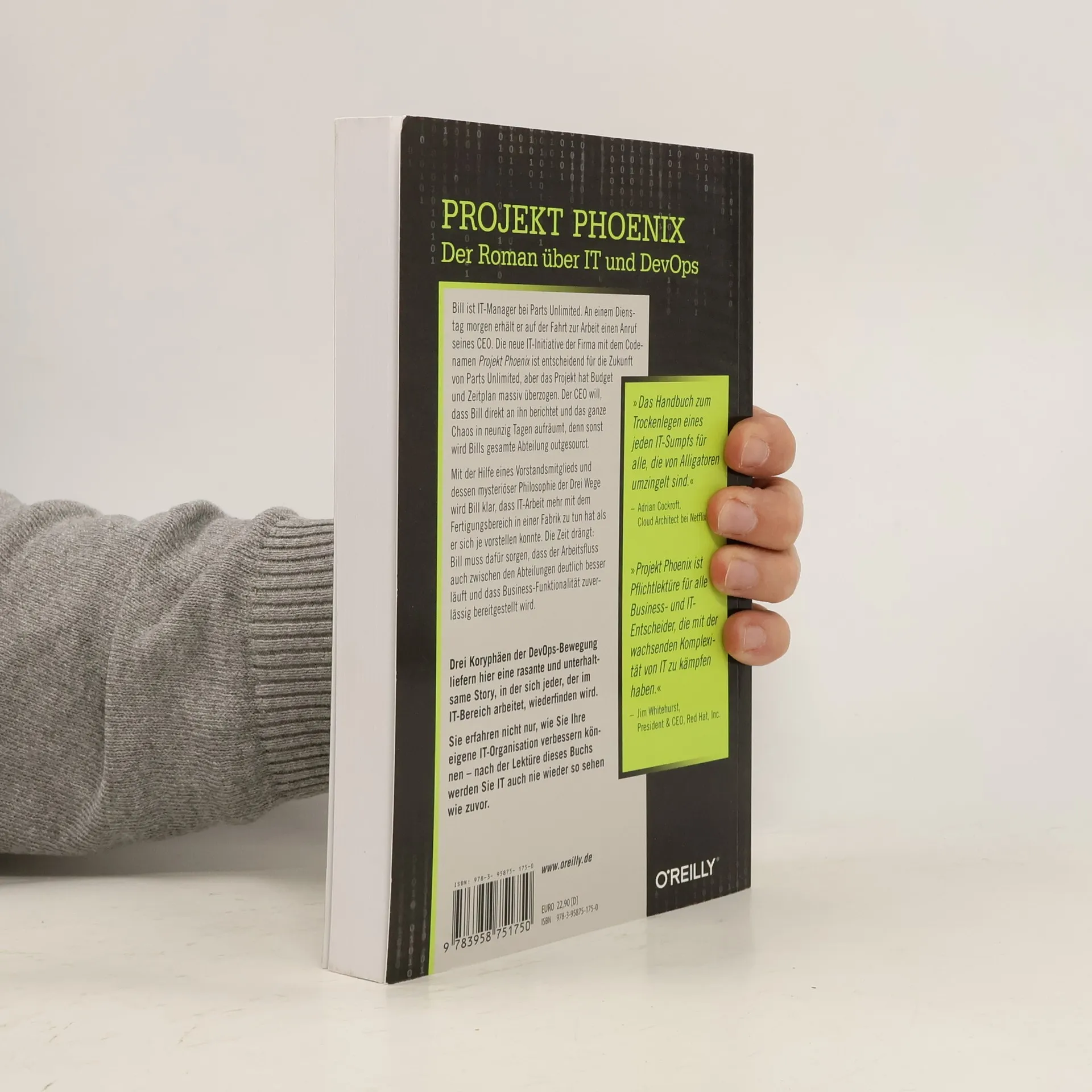 Bill Palmer wird überraschend zum Bereichsleiter der IT-Abteilung eines Autoteileherstellers befördert und muss nun eine Katastrophe nach der anderen bekämpfen. Gleichzeitig läuft ein wichtiges Softwareprojekt und die Wirtschaftsprüfer sind auch im Haus. Schnell wird klar, dass »mehr Arbeiten, mehr Prioritäten setzen, mehr Disziplin« nicht hilft. Das ganze System funktioniert einfach nicht, eine immer schneller werdende Abwärtsspirale führt dazu, dass das Unternehmen kurz vor dem Aus steht. Zusammen mit einem weitsichtigen Aufsichtsratsmitglied fängt Bill Palmer an, das System umzustellen. Er organisiert Kommunikation und Workflow zwischen Abteilungen neu, entdeckt und entschärft Flaschenhälse und stimmt sich mit dem Management besser ab. Er schafft es damit, das Ruder herumzureißen. Das Buch zeigt, wie neue Ideen und Strategien der DevOps-Bewegung konkret umgesetzt werden können und zum Erfolg führen - und liest sich dabei wie ein guter Wirtschaftskrimi!..