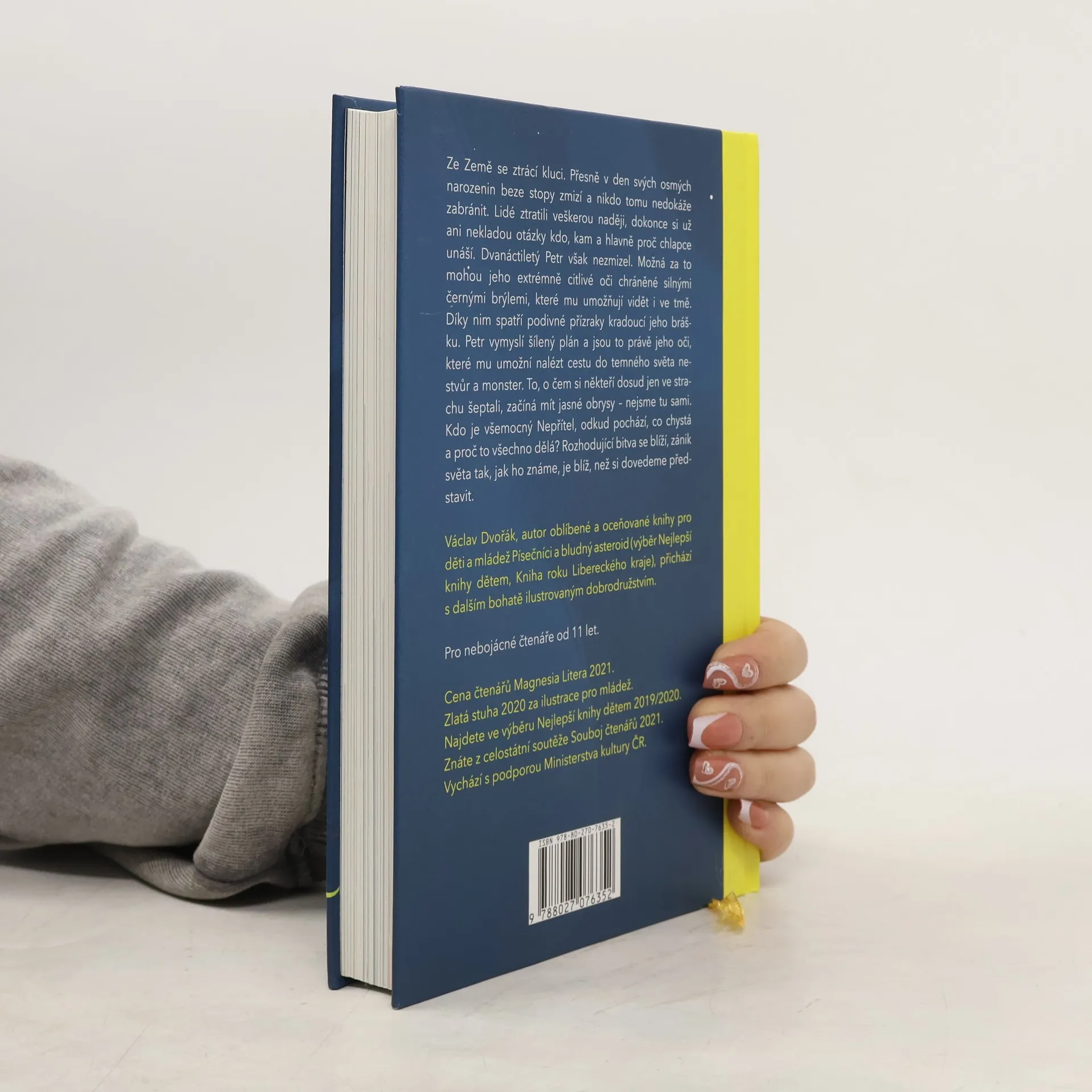 Ze Země se ztrácí kluci. Přesně v den svých osmých narozenin beze stopy zmizí a nikdo tomu nedokáže zabránit. Lidé ztratili veškerou naději, dokonce si už ani nekladou otázky kdo, kam a hlavně proč chlapce unáší. Dvanáctiletý Petr však nezmizel. Možná za to mohou jeho extrémně citlivé oči chráněné silnými černými brýlemi, které mu umožňují vidět i ve tmě. Díky nim spatří podivné přízraky kradoucí jeho brášku. Petr vymyslí šílený plán a jsou to právě jeho oči, které mu umožní nalézt cestu do temného světa nestvůr a monster. To, o čem si někteří dosud jen ve strachu šeptali, začíná mít jasné obrysy – nejsme tu sami. Kdo je všemocný Nepřítel, odkud pochází, co chystá a proč to všechno dělá? Rozhodující bitva se blíží, zánik světa tak, jak ho známe, je blíž, než si dovedeme představit.Václav Dvořák, autor oblíbené a oceňované knihy pro děti a mládež Písečníci a bludný asteroid (výběr Nejlepší knihy dětem, Kniha roku Libereckého kraje), přichází s dalším bohatě ilustrovaným dobrodružstvím. Pro nebojácné čtenáře od 11 let.