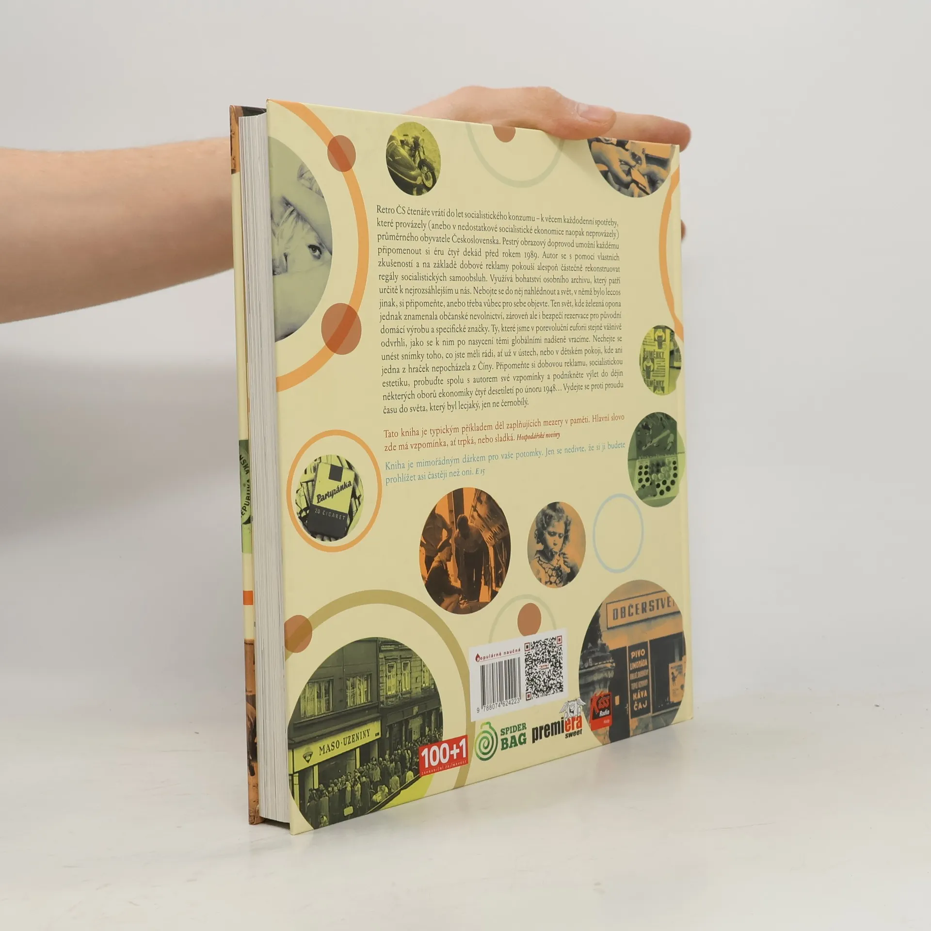 Co bylo (a nebylo) za reálného socialismu. Retro ČS čtenáře vrátí do let socialistického konzumu – k věcem každodenní spotřeby, které provázely (anebo v nedostatkové socialistické ekonomice naopak neprovázely) průměrného obyvatele Československa. Pestrý obrazový doprovod umožní každému připomenout si éru čtyř dekád před rokem 1989. Autor s pomocí vlastních zkušeností a na základě dobové reklamy alespoň částečně rekonstruuje regály socialistických samoobsluh. Využívá bohatství osobního archivu, který patří určitě k nejrozsáhlejším u nás. Nebojte se do něj nahlédnout a svět, v němž bylo leccos jinak, si připomeňte, anebo třeba vůbec pro sebe objevte. Ten svět, kde železná opona jednak znamenala občanské nevolnictví, zároveň ale i bezpečí rezervace pro původní domácí výrobu a specifické značky. Ty, které jsme v porevoluční euforii stejně vášnivě odvrhli, jako se k nim po nasycení těmi globálními nadšeně vracíme. Nechejte se unést snímky toho, co jste měli rádi, ať už v ústech, nebo v dětském pokoji, kde ani jedna z hraček nepocházela z Číny. Připomeňte si dobovou reklamu, socialistickou estetiku, probuďte spolu s autorem své vzpomínky a podnikněte výlet do dějin některých oborů ekonomiky čtyř desetiletí po únoru 1948…