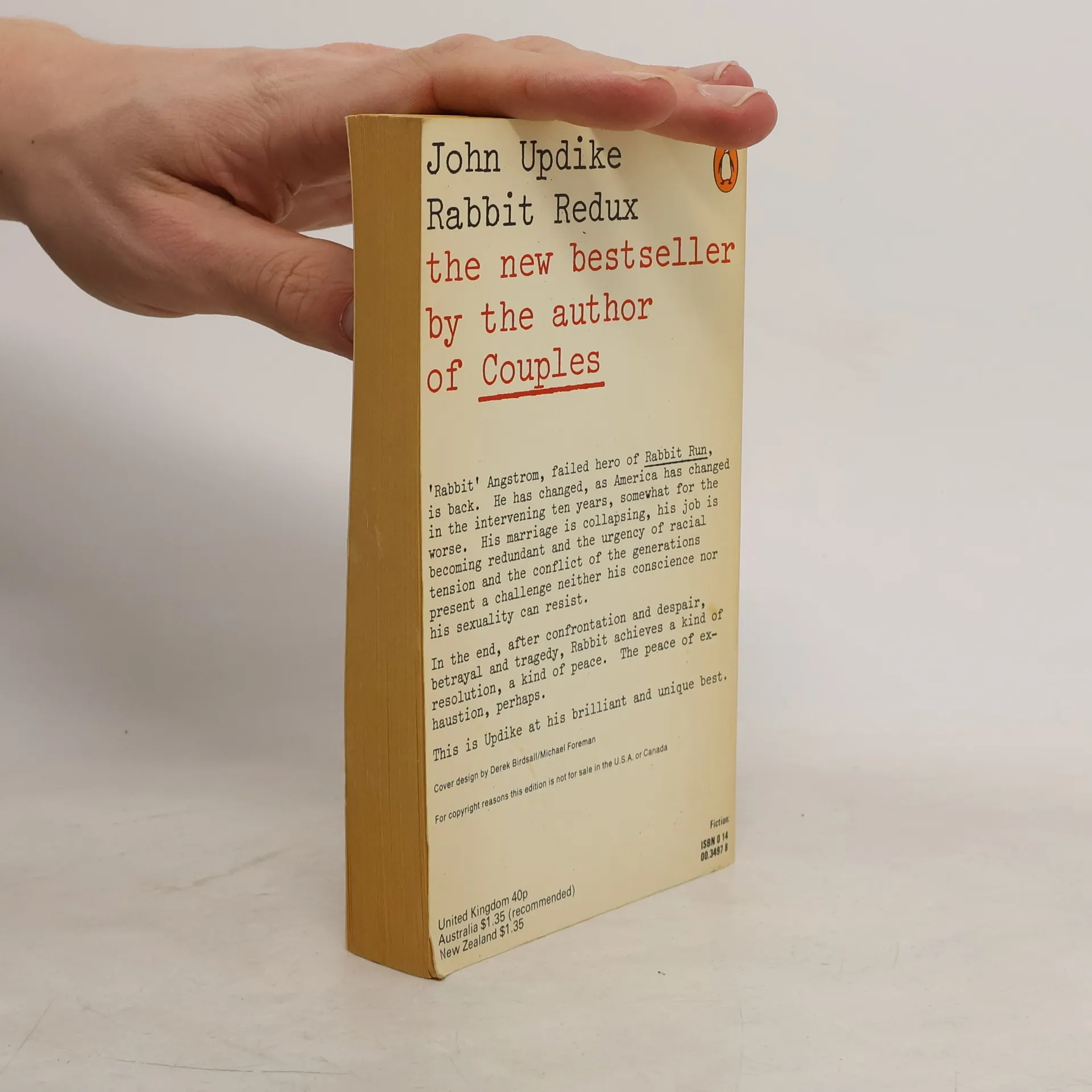 It's 1969 and Rabbit has changed, as America has changed in the intervening ten years since the book "Rabbit, Run". His marriage is collapsing, his job is redundant and the urgency of racial tension present a challenge neither his consciousness nor his sexuality can resist.