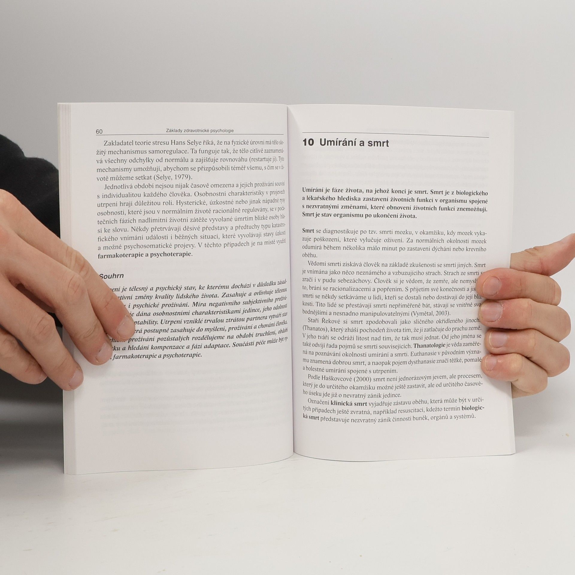 Jde o učebnici určenou vzdělaným laikům, studentům a pracovníkům pomáhajících profesí (zdravotní sestry, psychologové, lékaři, sociální pracovníci atd.). Ve výstižném textu se autorka – zkušená psycholožka zabývající se ve své praxi především psychologickou problematikou spojenou se somatickými chorobami (onkologickými, chirurgickými a gynekologickými pacienty) – zaměřila na základní oblasti aplikované zdravotnické psychologie: na vztahy mezi pacienty, lékaři a sestrami, základní charakteristiky komunikace mezi lékaři a pacienty (včetně možných cest řešení možných kontroverzí). Autorka se rovněž věnuje tématu bolesti, utrpení a smrti.
