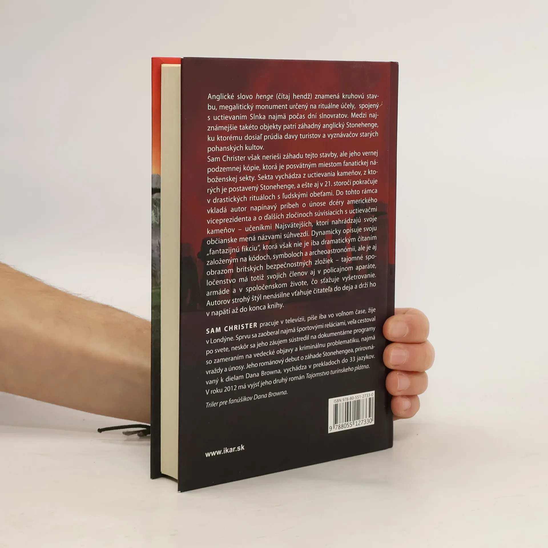 Anglické slovo henge (čítaj hendž) znamená kruhovú stavbu, megalitický monument určený na rituálne účely, spojený s uctievaním Slnka najmä počas dní slnovratov. Medzi najznámejšie takéto objekty patrí záhadný anglický Stonehenge, ku ktorému dosiaľ prúdia davy turistov a vyznávačov starých pohanských kultov. Sam Christer však nerieši záhadu tejto stavby, ale jeho vernej podzemnej kópie, ktorá je posvätným miesto fanatickej náboženskej sekty. Sekta vychádza z uctievania kameňov, z ktorých je postavený Stonehenge, a ešte aj v 21. storočí pokračuje v drastických rituáloch s ľudskými obeťami. Do tohto rámca vkladá autor napínavý príbeh o únose dcéry amerického viceprezidenta a o ďalších zločinoch súvisiacich s uctievačmi kameňov – učeníkmi Najsvätejších, ktorí nahrádzajú svoje občianske mená názvami súhvezdí. Dynamicky opisuje svoju „fantazijnú fikciu“, ktorá však nie je iba dramatickým čítaním založeným na kódoch, symboloch a archeoastronómii, ale je aj obrazom britských bezpečnostných zložiek –tajomné spoločenstvo má totiž svojich členov aj v policajnom aparáte, armáde a v spoločenskom živote, čo sťažuje vyšetrovanie. Autorov strohý štýl nenásilne vťahuje čitateľa do deja a drží ho v napätí až do konca knihy
