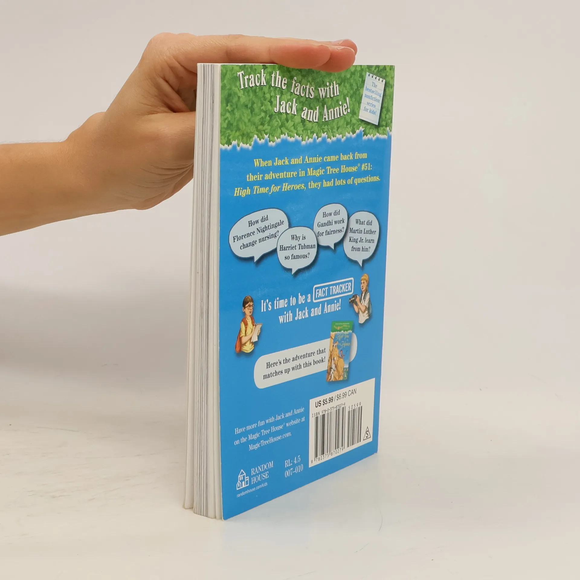 Jack and Annie learn amazing facts about six history-changing individuals, including Susan B. Anthony, Mahatma Ghandi, Martin Luther King, Jr., John Muir, Florence Nightingale ,and Harriet Tubman