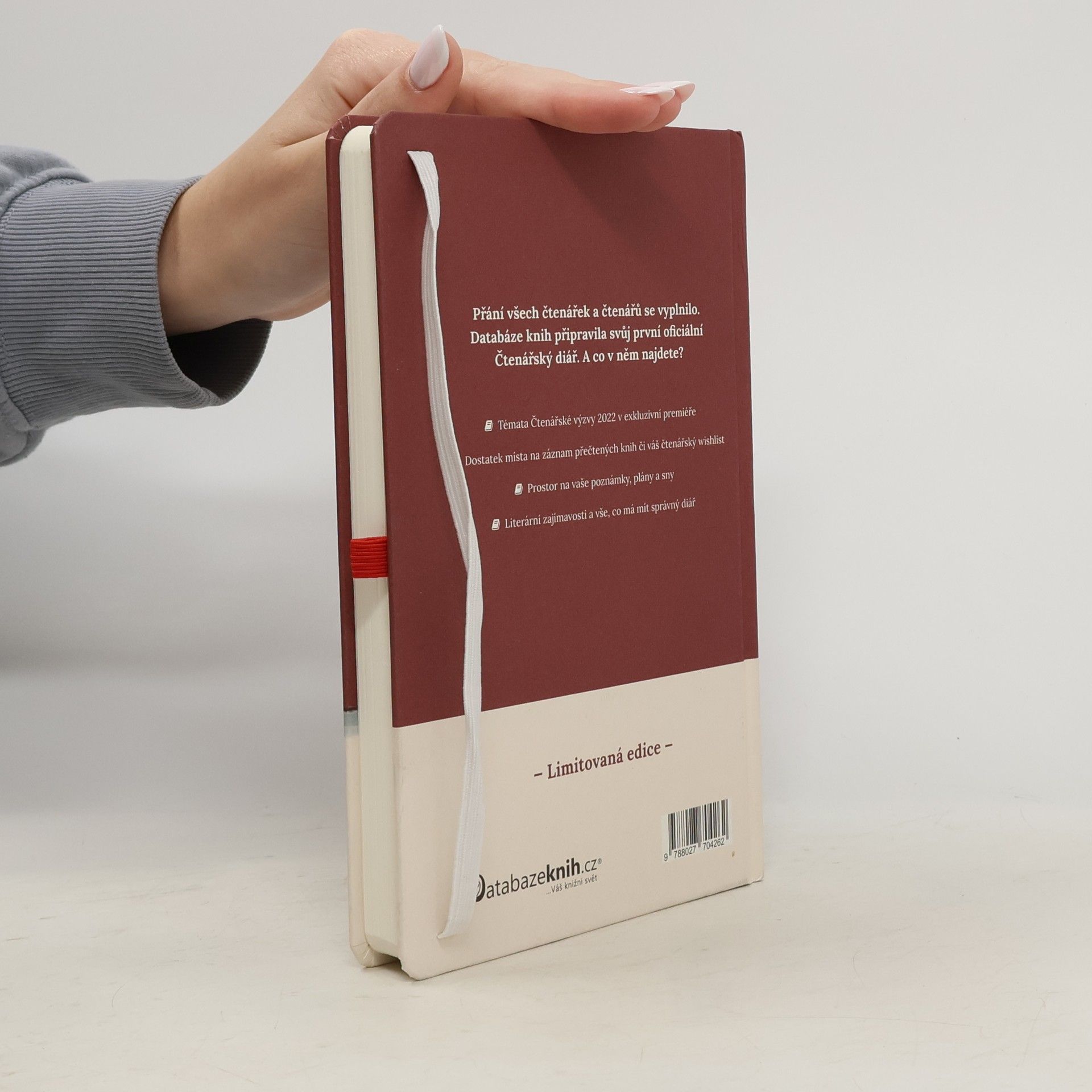 Oficiální diář Databáze knih a Čtenářské výzvy 2022. Představujeme vám splněné přání všech nadšenců do skvělého čtení. Historicky poprvé vychází oficiální Čtenářský diář Databáze knih. Tento týdenní diář v sobě ukrývá nejen dostatek prostoru na vaše sny, plány a úkoly. Je to společník každé knihomolky a knihomola! A co je zásadním bonusem? Jedná se o oficiální diář Čtenářské výzvy 2022. Najdete v něm vůbec poprvé všechna témata nové Čtenářské výzvy! Co vše ukrývá Čtenářský diář 2022: - Úvodní slovo zakladatele Databáze knih - Oficiální představení témat Čtenářské výzvy 2022 - Doporučení na knihy, které můžete zařadit do Čtenářské výzvy 2022 - Prostor na zaznamenávání vašeho postupu v plnění Čtenářské výzvy - Týdenní diář se stranou na poznámky ke každému týdnu - Stránky na zaznamenávání knížek, které si chcete koupit Oficiální Čtenářský diář 2022 Databáze knih vychází v limitované edici.