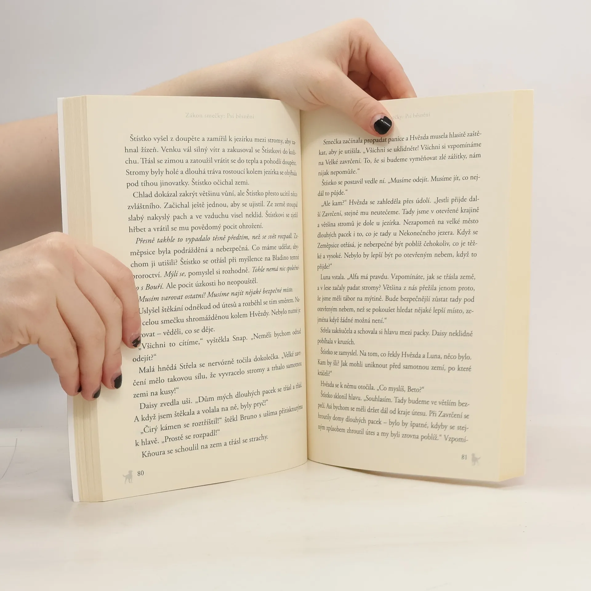 Šestý díl oblíbené série o Štístkovi a jeho psích přátelích. Divoká smečka získala nového vůdce a dokázala překonat nástrahy Nekonečného jezera. Nalezený úkryt všem přinesl pocit bezpečí, jen Štístko stále pochybuje. Má vidění, ve kterém všichni psi musí mezi sebou bojovat o holý život. Psí běsnění se blíží…