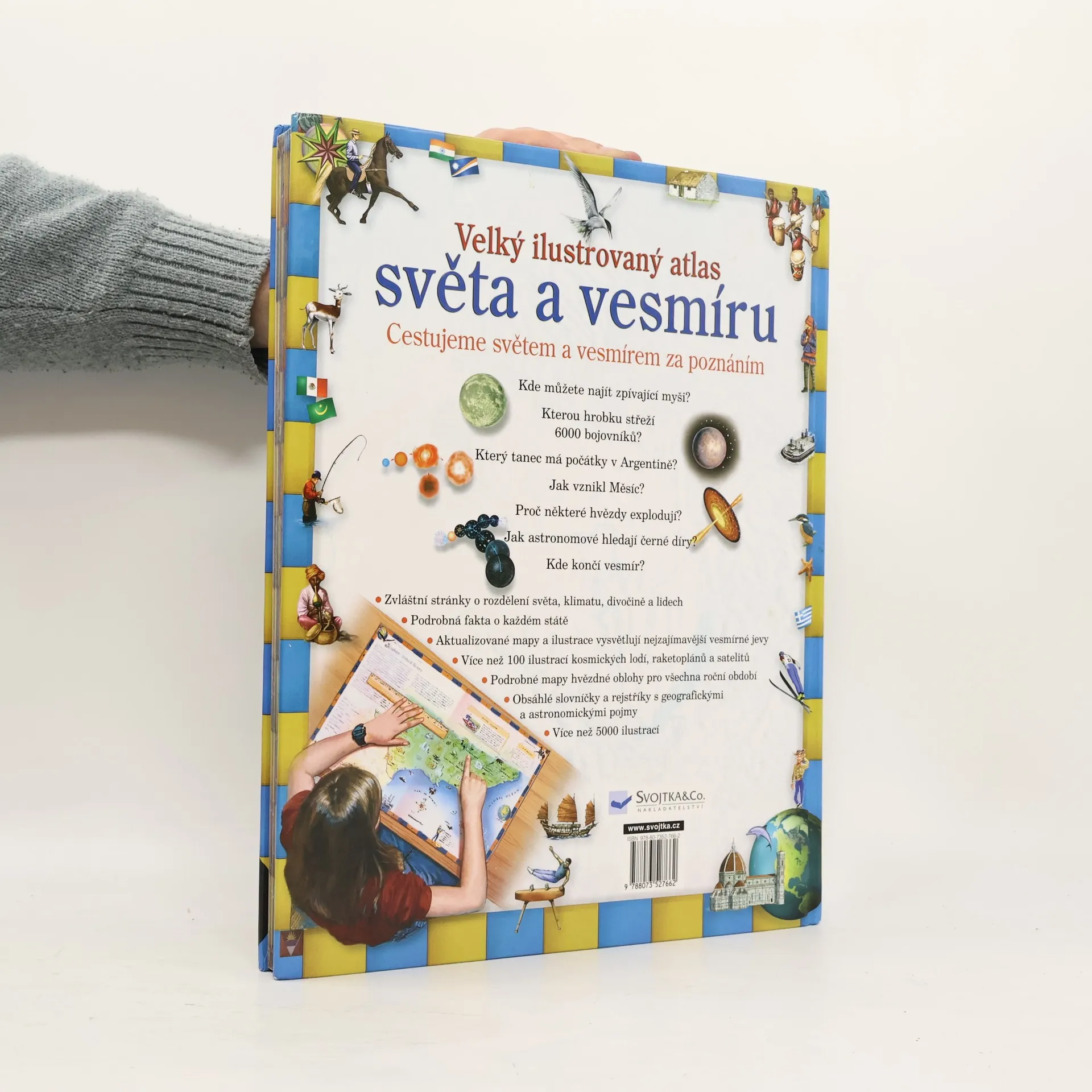 Tato kniha naučí děti aktivně studovat a používat různé typy map. Obsahuje velké množství ilustrací světových míst, lidí, reliéfů a způsobu života. Mimo to se s ní za pomoci barevných obrázků a nákresů vydáme i na zábavný výlet napříč celým vesmírem. Knížka obsahuje i praktická cvičení. .