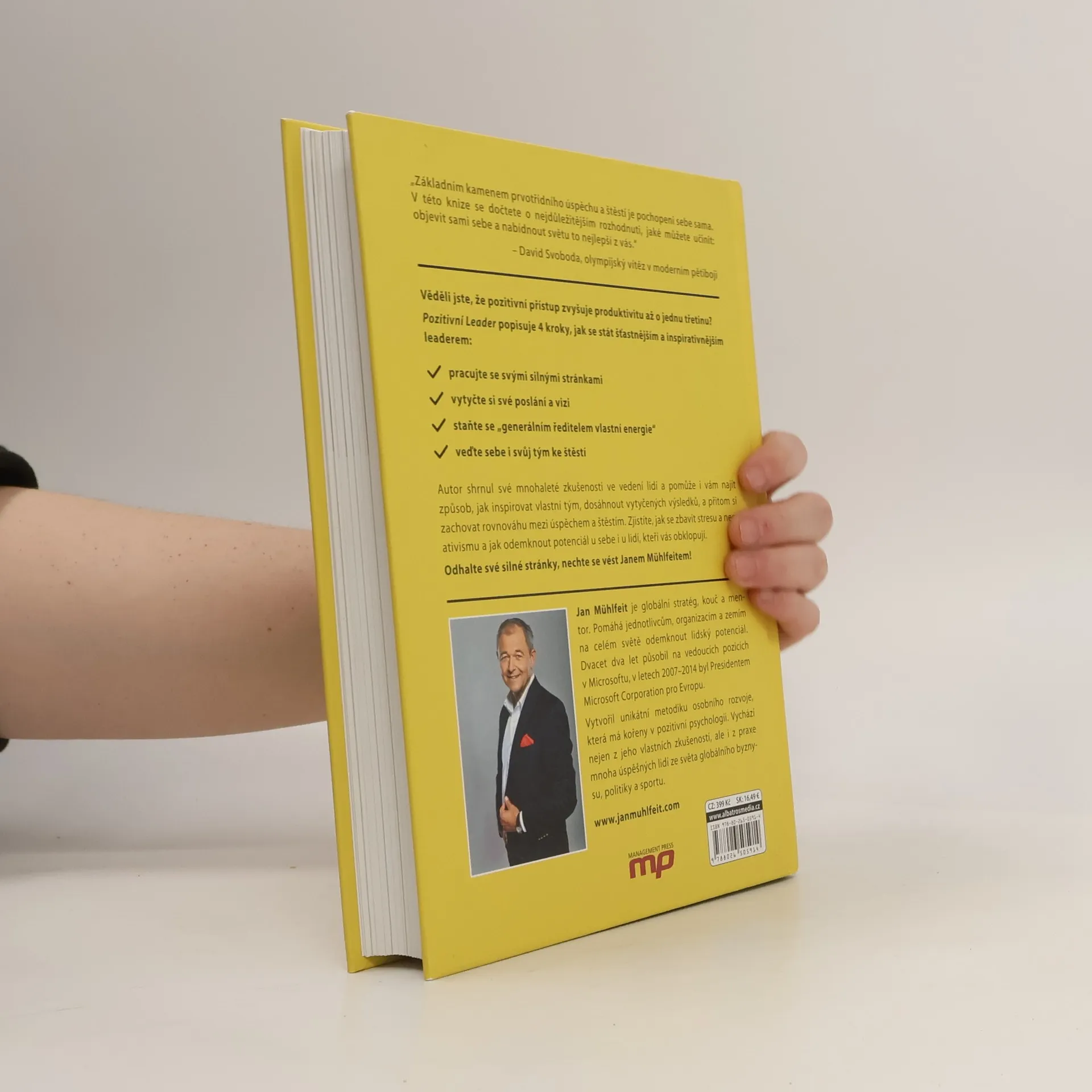 Autor, bývalý prezident evropského Microsoftu, shrnul do knihy své mnohaleté zkušenosti ve vedení lidí. Pomůže vám najít způsob, jak inspirovat vlastní tým, dosáhnout vytyčených výsledků, a přitom si zachovat rovnováhu mezi úspěchem a štěstím. Zjistíte, jak se zbavit stresu a negativismu a odemknout potenciál u sebe i u lidí, kteří vás obklopují. Odhalte své silné stránky, nechte se vést Janem Mühlfeitem!