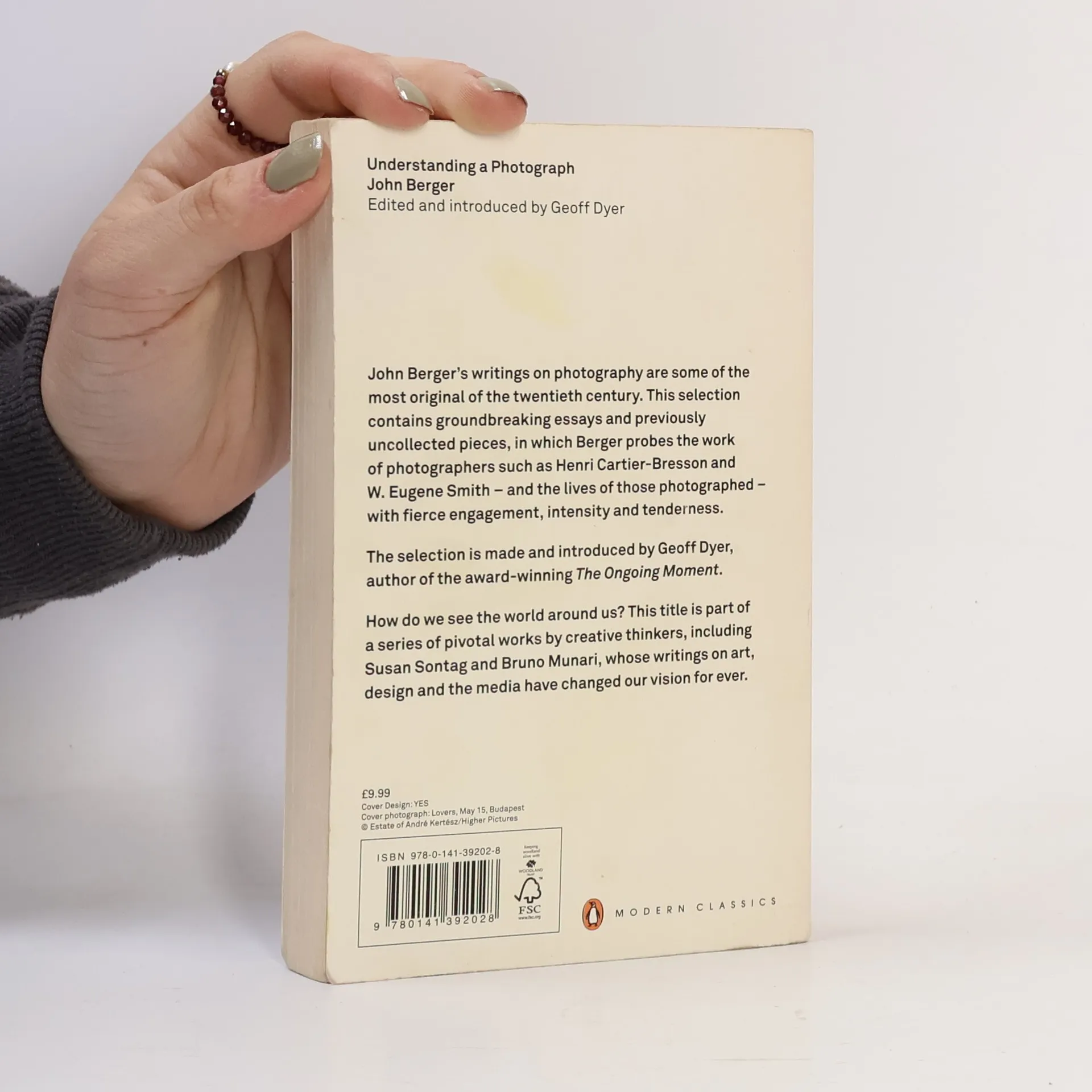 John Berger's writings on photography are some of the most original of the twentieth century. This selection contains many groundbreaking essays and previously uncollected pieces written for exhibitions and catalogues in which Berger probes the work of photographers such as Henri Cartier-Bresson and W. Eugene Smith - and the lives of those photographed - with fierce engagement, intensity and tenderness. The selection is made and introduced by Geoff Dyer, author of the award-winning The Ongoing Moment. How do we see the world around us? This is one of a number of pivotal works by creative thinkers whose writings on art, design and the media have changed our vision for ever. Understanding a Photograph John Berger Edited and introduced by Geoff Dyer
