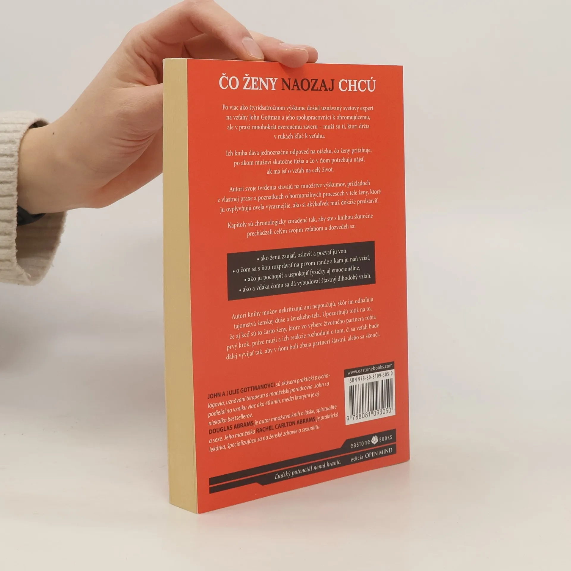 Po viac ako štyridsaťročnom výskume došiel uznávaný svetový expert na vzťahy John Gottman a jeho spolupracovníci k ohromujúcemu, ale v praxi mnohokrát overenému záveru – muži sú tí, ktorí držia v rukách kľúč k vzťahu. Autori svoje tvrdenia stavajú na množstve výskumov, príkladoch z vlastnej praxe a poznatkoch o hormonálnych procesoch v tele ženy, ktoré ju ovplyvňujú oveľa výraznejšie, ako si akýkoľvek muž dokáže predstaviť. Kapitoly sú chronologicky zoradené tak, aby ste s knihou skutočne prechádzali celým svojím vzťahom a dozvedeli sa, ako ženu zaujať, osloviť a pozvať ju von, o čom sa s ňou rozprávať na prvom rande a kam ju naň vziať, ako ju pochopiť a uspokojiť fyzicky aj emocionálne a vďaka čomu sa dá vybudovať šťastný dlhodobý vzťah.