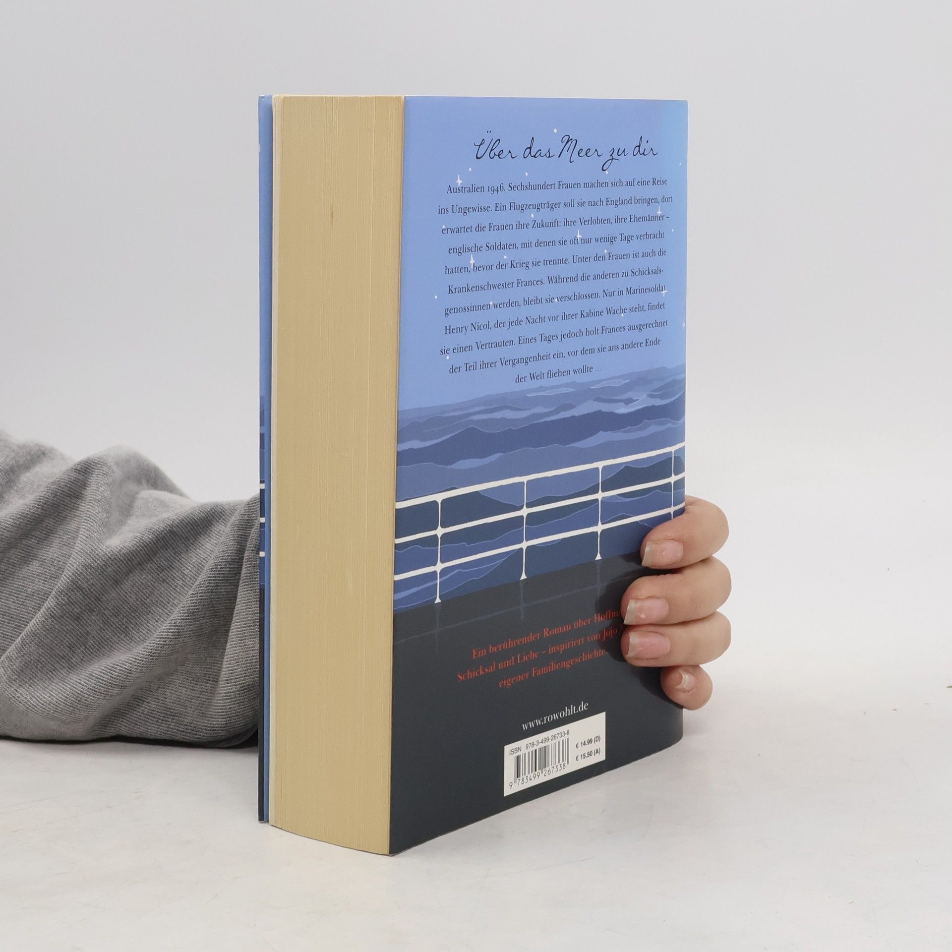 Ein berührender Roman über Hoffnung, Schicksal und Liebe – inspiriert von Jojo Moyes’ eigener Familiengeschichte. Australien 1946. Sechshundert Frauen machen sich auf eine Reise ins Ungewisse. Ein Flugzeugträger soll sie nach England bringen, dort erwartet die Frauen ihre Zukunft: ihre Verlobten, ihre Ehemänner – englische Soldaten, mit denen sie oft nur wenige Tage verbracht hatten, bevor der Krieg sie wieder trennte. Unter den Frauen ist auch die Krankenschwester Frances. Während die anderen zu Schicksalsgenossinnen werden, ihre Hoffnungen und Ängste miteinander teilen, bleibt sie verschlossen. Nur in Marinesoldat Henry Nicol, der jede Nacht vor ihrer Kabine Wache steht und wie sie Schreckliches erlebt hat im Krieg, findet sie einen Vertrauten. Eines Tages jedoch holt Frances ausgerechnet der Teil ihrer Vergangenheit ein, vor dem sie ans andere Ende der Welt fliehen wollte … Jeder von Jojo Moyes‘ Romanen eroberte die Spitze der Bestsellerliste. Ihre besondere Mischung aus Leichtigkeit und Tiefe, aus Humor und Dramatik begeistert weltweit Millionen Leser: innen.