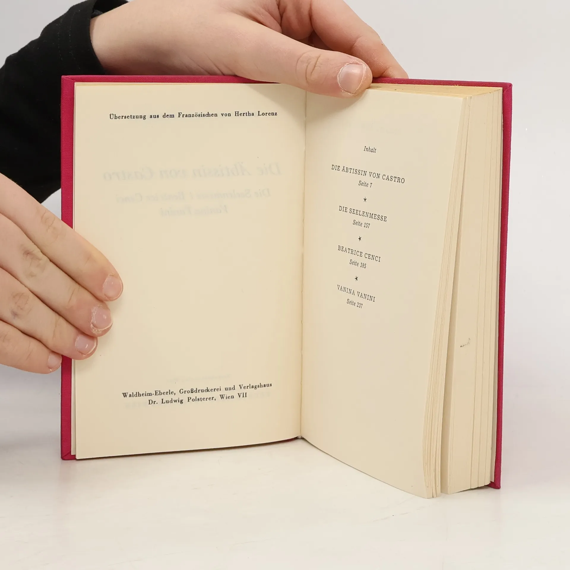 Stendhals Novelle „Die Äbtissin von Castro“ (1839) erzählt die Geschichte einer jungen Nonne. Diese Neuausgabe, übersetzt von Martha Musil und herausgegeben von Karl-Maria Guth, wurde an die neue deutsche Rechtschreibung angepasst. Sie ist Teil der Sammlung Hofenberg im Verlag Henricus.