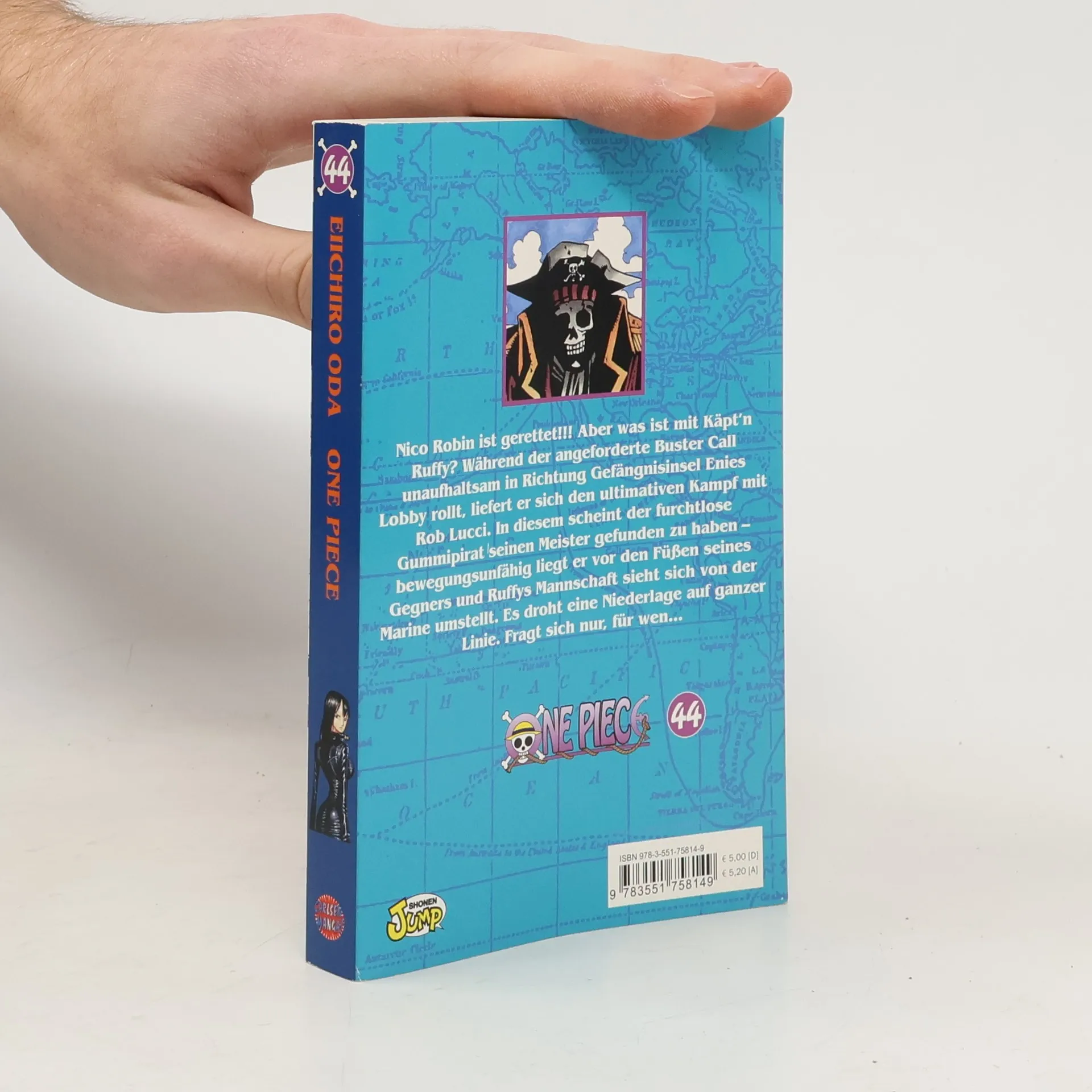 Nico Robin ist gerettet!!! Aber was ist mit Käpt'n Ruffy? Während der anforderte Buster Call unaufhaltsam in Richtung Gefängnisinsel Enies Lobby rollt, liefert er sich den ultimativen Kampf mit Rob Lucci. Doch in diesem scheint der furchtlose Gummipirat seinen Meister gefunden zu haben - bewegungsunfähig liegt er vor den Füßen seines Gegners, der zum finalen Schlag ausholt. Plötzlich sieht sich seine Mannschaft, die ohne ihren Anführer nicht flüchten will, von Hunderten von verheerenden Kanonen der Marine umstellt. Es droht eine Niederlage auf ganzer Linie. Fragt sich nur, für wen…