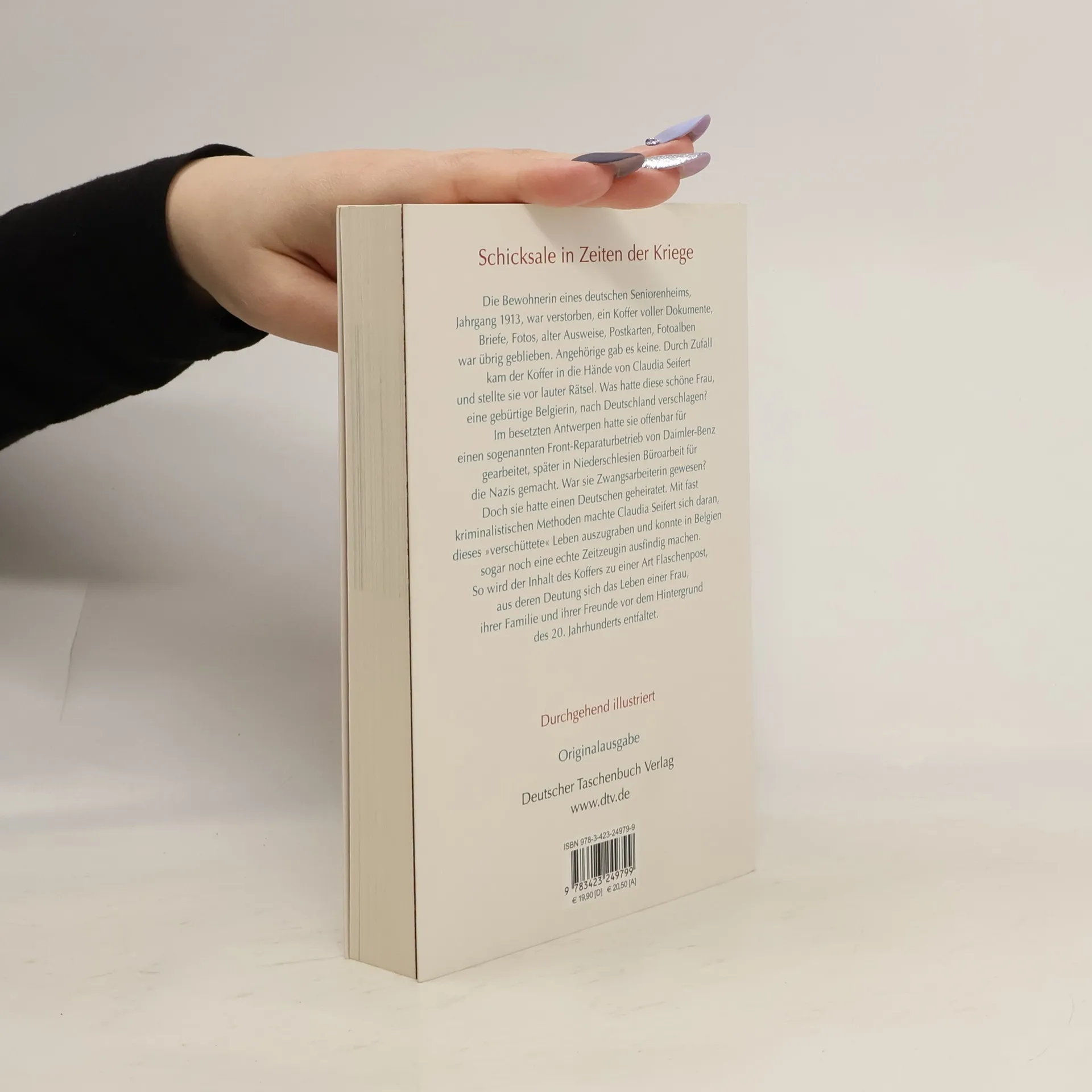 Adriana, Jahrgang 1913Die Bewohnerin eines deutschen Seniorenheims, Jahrgang 1913, war verstorben, ein Koffer voller Dokumente, Briefe, Fotos, alter Ausweise, Postkarten, Fotoalben war übrig geblieben. Angehörige gab es keine. Durch Zufall kam der Koffer in die Hände von Claudia Seifert und stellte sie vor lauter Rätsel.