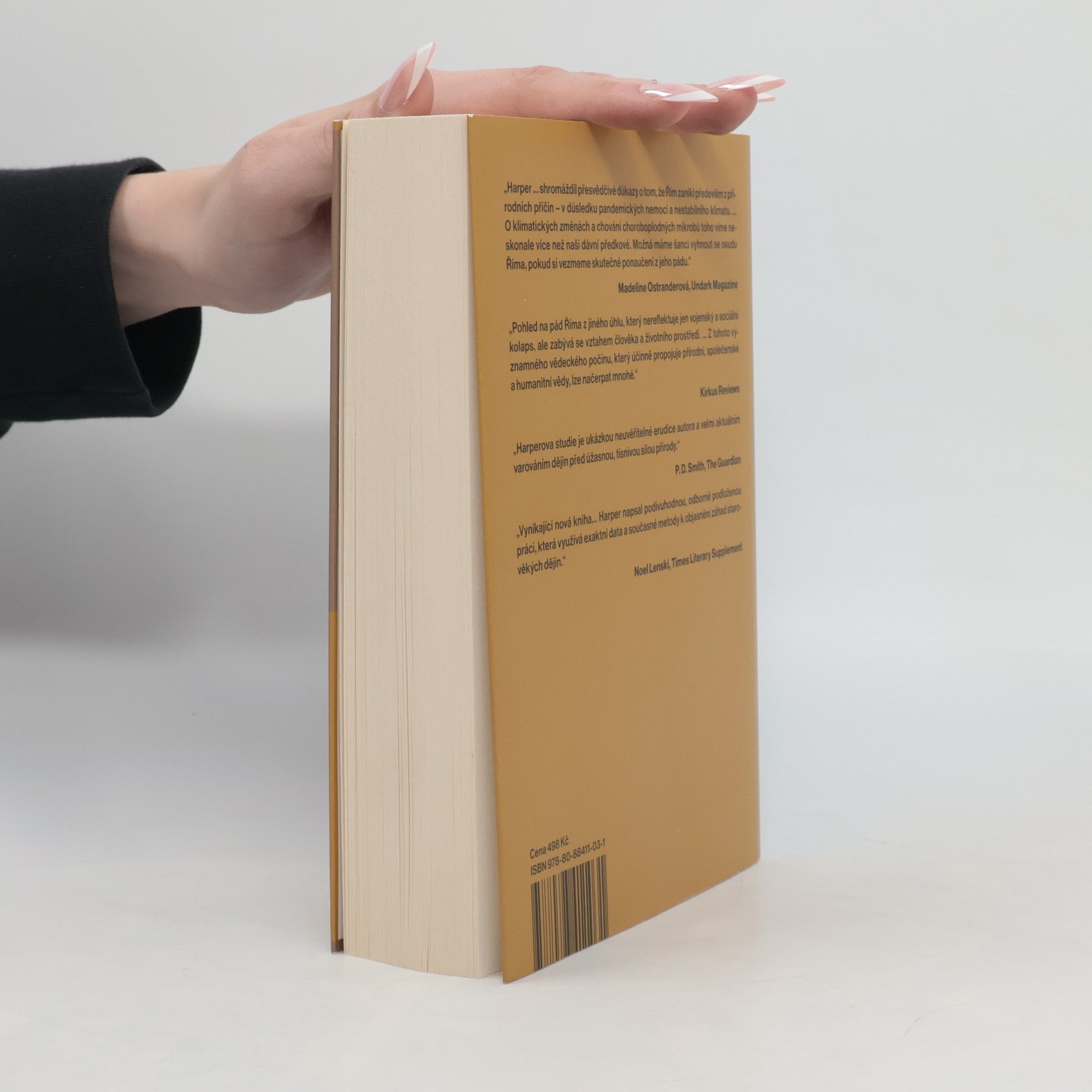 2. vydání. Pozoruhodná práce, napsaná v roce 2017, líčí, jak ničivé pandemie a klimatické změny zpustošily rozsáhlou římskou říši a přispěly k pádu nejmocnější civilizace starověku. Dějepisci jsou po staletí fascinováni pádem římské civilizace. Kyle Harper ve své knize poprvé klade důraz na úlohu, kterou při něm hrály klimatické změny a velké epidemie. Pomocí moderních vědeckých metod a dat z „přírodních archivů“, tedy z ledovcových jader nebo sekvenování DNA, Harper odhaluje, že osud Říma nebyl psán pouze jeho politiky, vojáky a okolními barbary, ale že k němu přispěly i sopečné erupce, sluneční cykly, klimatická nestabilita či devastující účinky rychlého šíření virů a bakterií, které umožnila pokročilá římská infrastruktura. Kolaps Říma byl totiž podle autora zejména triumfem přírody nad lidskou ctižádostí. Ve 2. století, na vrcholu své síly, byl Řím neporazitelnou supervelmocí. O několik století později byly všechny jeho zdroje vyčerpané a říše se topila v politickém chaosu. Kniha popisuje boj Římanů s neustále se zhoršujícími výkyvy podnebí a opakovaně propukajícími epidemiemi pravých neštovic, dýmějového moru a jiných, kterým obležená říše nemohla odolávat navěky. V Harperově břitké reflexi vztahu lidstva a planety slouží Řím jako memento toho, že dějiny naší civilizace jsou klimatickými vlivy a evolucí mikrobů psány v mnohem větší míře, než si ještě dnes dokážeme přiznat. ISBN 978-80-88411-02-4 (chybné)