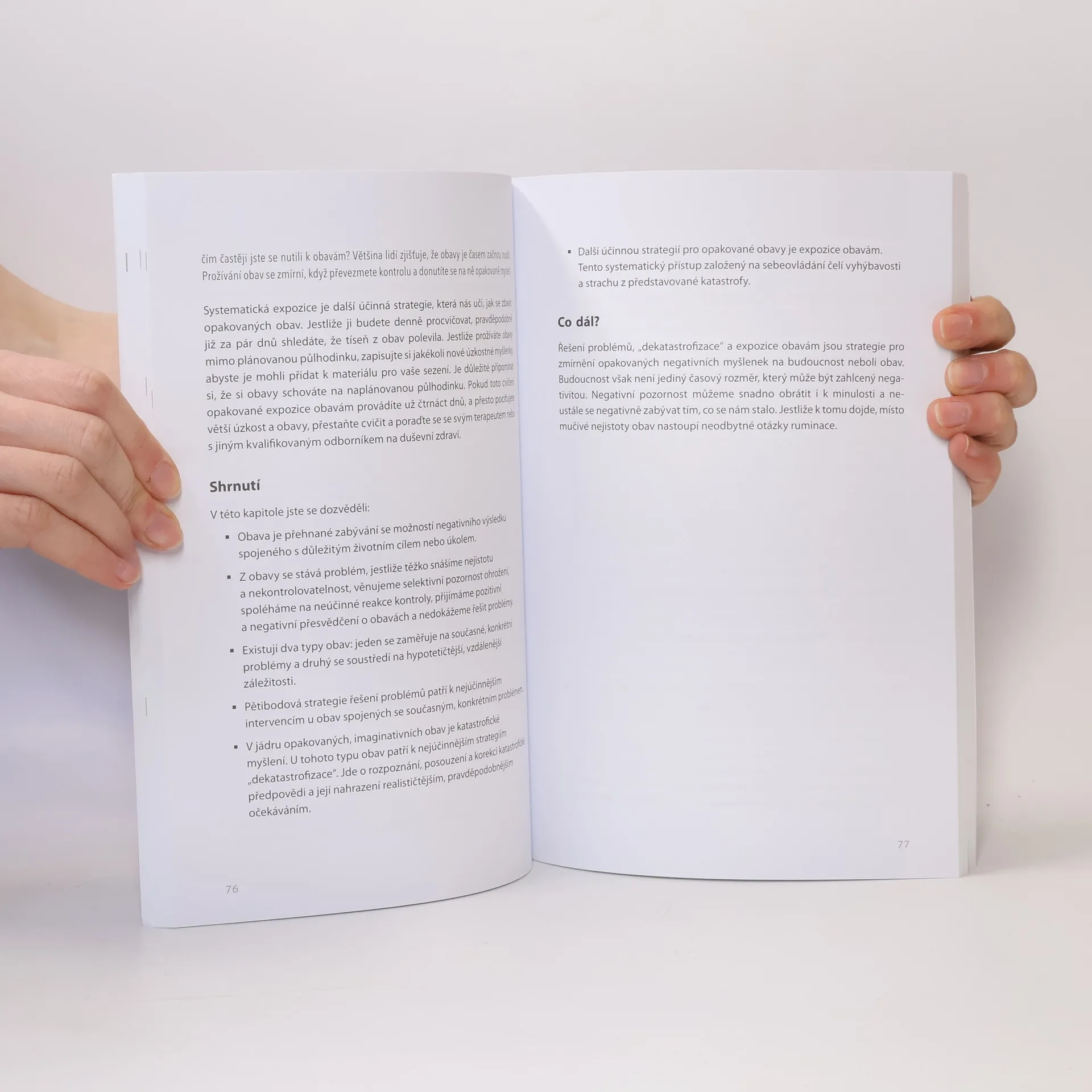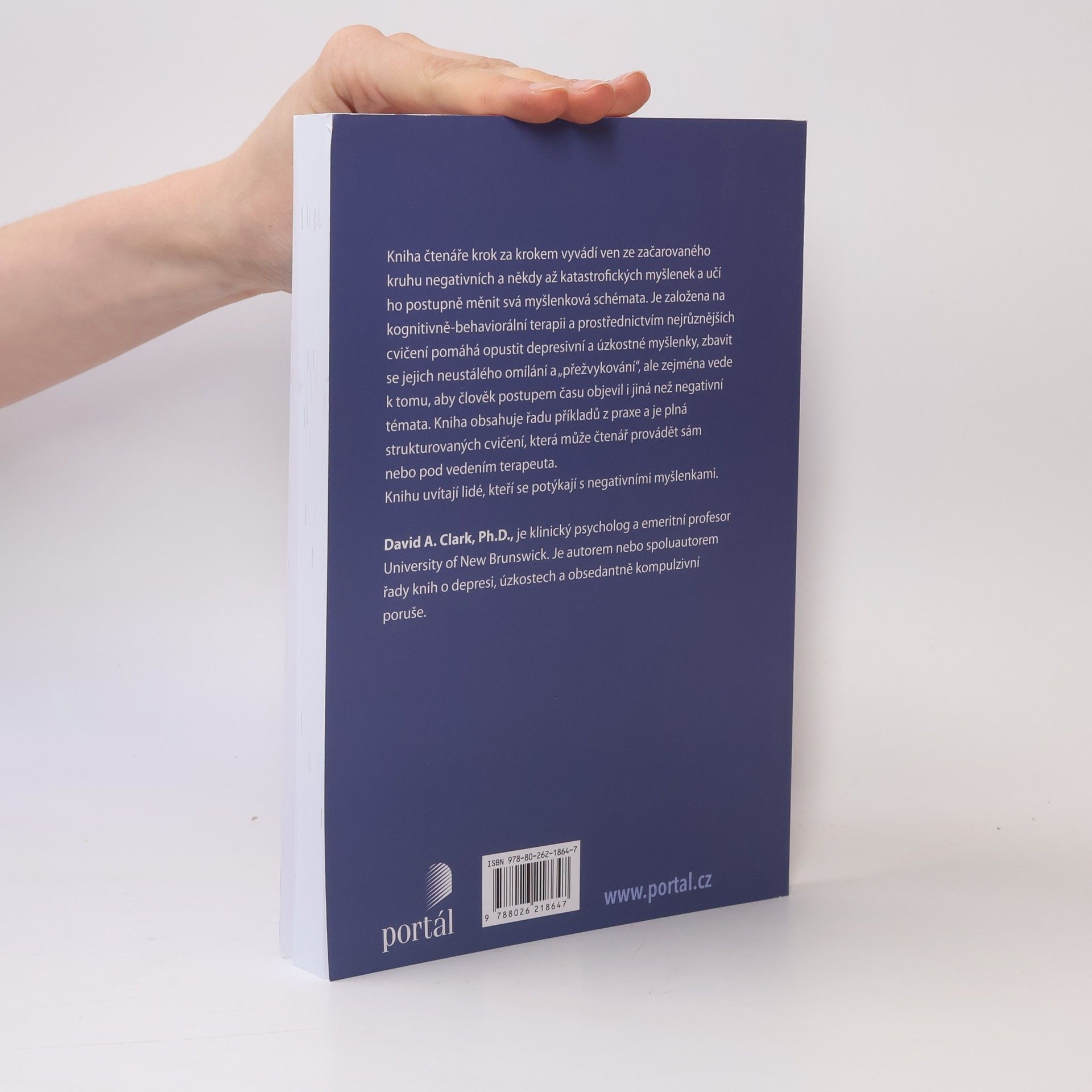 Kniha čtenáře krok za krokem vyvádí ven ze začarovaného kruhu negativních, a někdy až katastrofických myšlenek a učí ho postupně měnit jeho myšlenková schémata. Je založena na kognitivně-behaviorální terapii a prostřednictvím nejrůznějších cvičení pomáhá opustit depresivní a úzkostné myšlenky, zbavit se jejich neustálého omílání a „přežvykování“, ale zejména vede k tomu, aby člověk postupem času objevil i jiná než negativní témata. Kniha obsahuje řadu příkladů z praxe a je plná strukturovaných cvičení, která může čtenář provádět sám nebo pod vedením terapeuta. Knihu je určena všem, kteří se potýkají s negativními myšlenkami. David A. Clark, Ph.D., je klinický psycholog a emeritní profesor University of New Brunswick. Je autorem nebo spoluautorem řady knih o depresi, úzkostech a obsedantně-kompulzivní poruše.