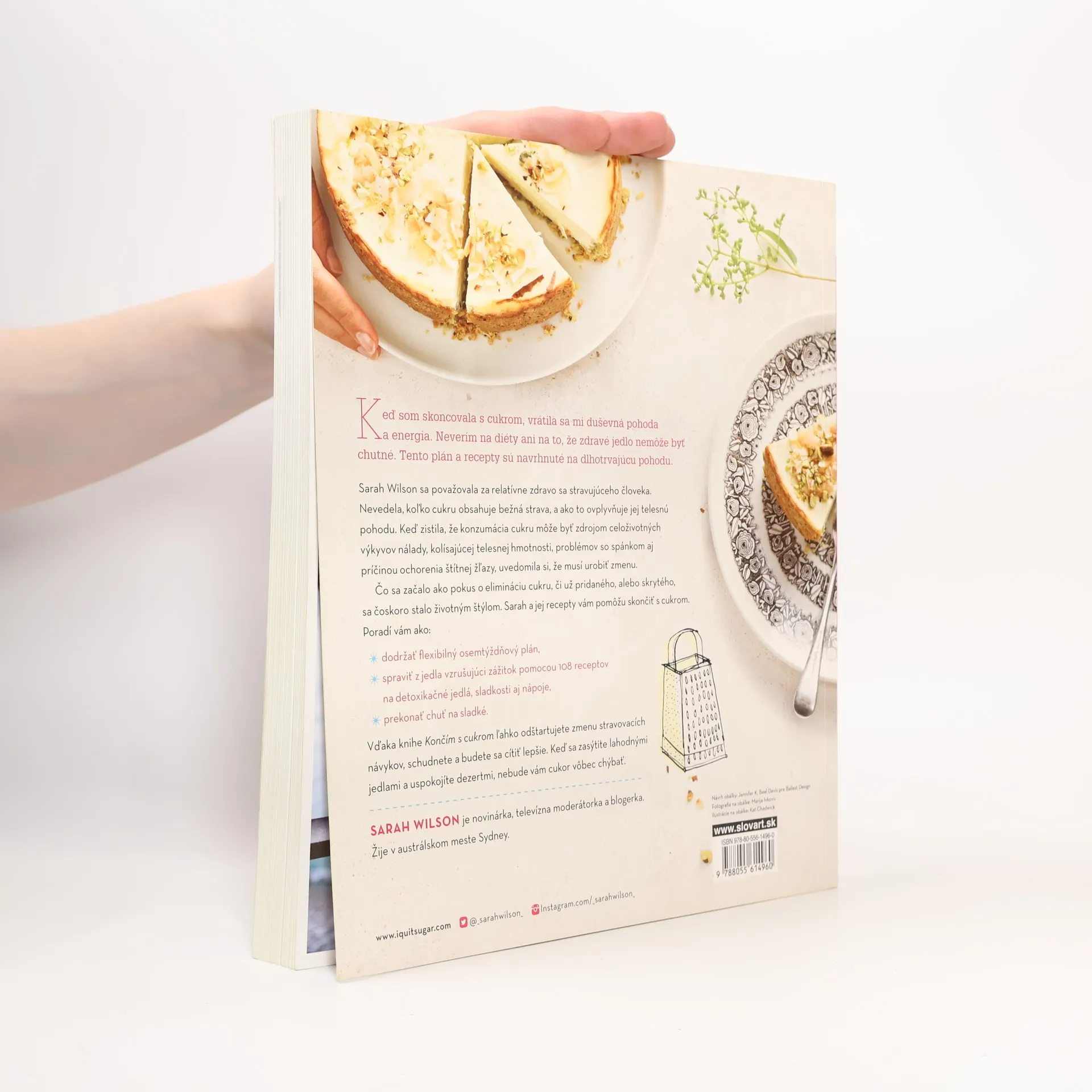 Táto kniha vám ukáže, ako odstrániť z jedálneho lístka cukor a cítiť sa dobre. Navyše je to aj kuchárska kniha. Konzumácia cukru môže byť zdrojom celoživotných výkyvov nálady, kolísajúcej telesnej hmotnosti, ochorenia štítnej žľazy či problémov so spánkom. Austrálska novinárka, moderátorka, blogerka a dnes už bestsellerová autorka Sarah Wilson odhaľuje, koľko ukrytého cukru obsahuje naša každodenná strava a ako ovplyvňuje našu telesnú pohodu. Ponúka 108 chutných receptov bez cukru na prípravu detoxikačných jedál, sladkostí aj nápojov. Prináša tiež jednoduchý a flexibilný 8-týždňový plán, pomocou ktorého ľahko odštartujete zmenu svojich stravovacích návykov a prekonáte chuť na nezdravé jedlá.