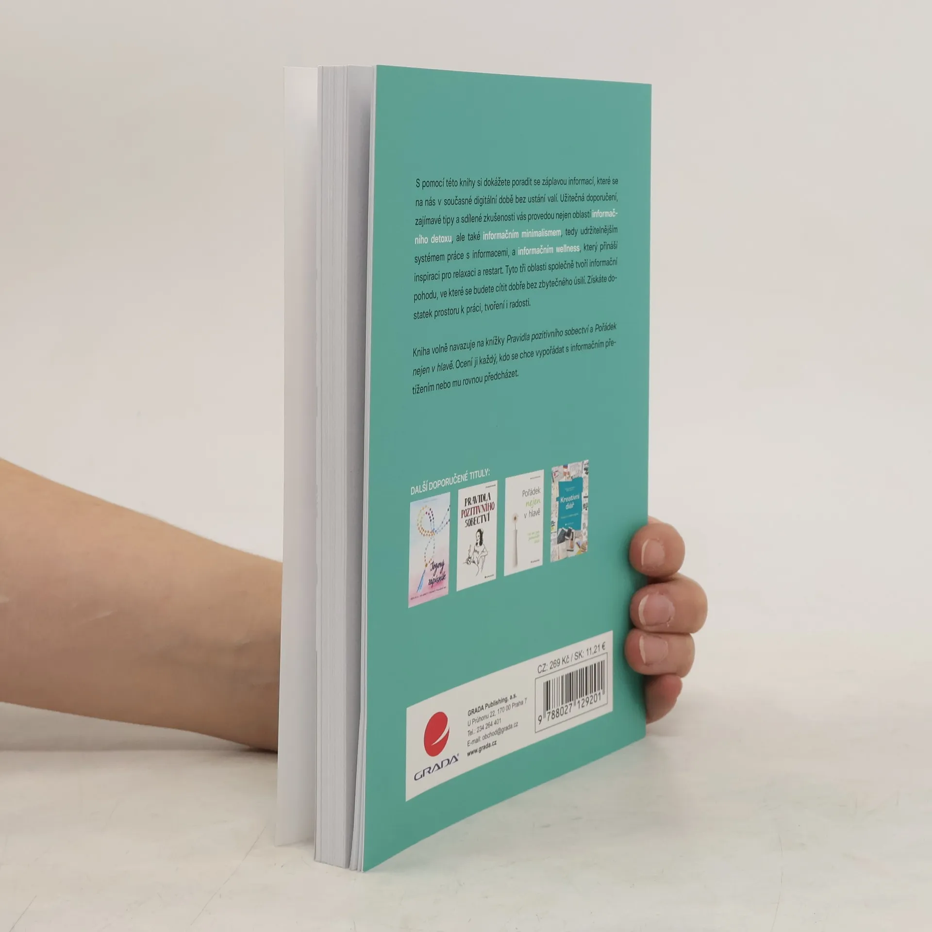 S pomocí této knihy si dokážete poradit se záplavou informací, které se na nás v současné digitální době bez ustání valí. Užitečná doporučení, zajímavé tipy a sdílené zkušenosti vás provedou nejen oblastí informačního detoxu, ale také informačním minimalismem, tedy udržitelnějším systémem práce s informacemi, a informačním wellness, který přináší inspiraci pro relaxaci a restart. Tyto tři oblasti společně tvoří informační pohodu, ve které se budete cítit dobře bez zbytečného úsilí. Získáte dostatek prostoru k práci, tvoření i radosti. Kniha volně navazuje na knížky „Pravidla pozitivního sobectví“ a „Pořádek nejen v hlavě“. Ocení ji každý, kdo se chce vypořádat s informačním přetížením nebo mu rovnou předcházet.