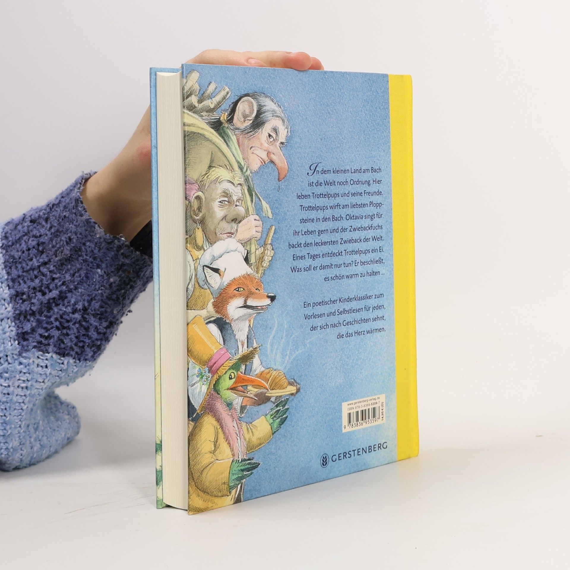In dem kleinen Land am Bach ist die Welt noch in Ordnung - hier leben Trottelpups, der am liebsten Ploppsteine in den Bach wirft, Oktavia, die so gerne singt, der Zwiebackfuchs, der neben Brot und Zwieback das leckerste Marzipan der Welt herstellt, der Stiefelstinker und der Grottenschniefer, die sich erst nicht ausstehen können und dann doch zu Freunden werden. Und natürlich das Erpelchen, der beste Freund von Trottelpups! Zusammen befreien sie den Bach, feiern sie das große Marzipanfest und finden das weise Steinhuhn, das dem Zwiebackfuchs verrät, wo er einen Goldfisch finden und damit seinen sehnlichsten Wunsch erfüllen kann. Ein poetisches Buch zum Vorlesen und Selberlesen, für alle Mumin- und Winnie-the-Pooh-Fans und für jeden, der sich nach Geschichten sehnt, die das Herz wärmen.
