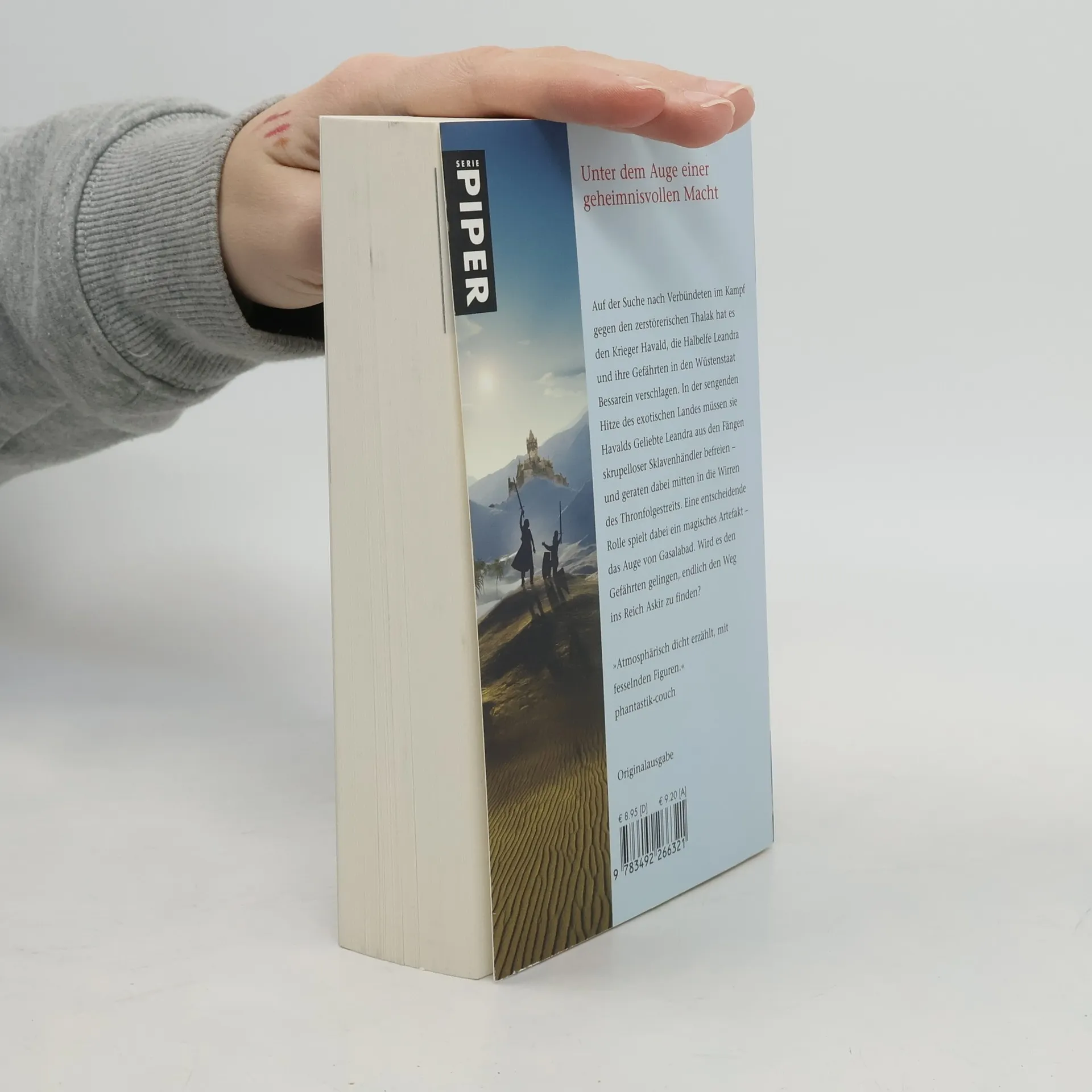 Auf der Suche nach Verbündeten im Kampf gegen den zerstörerischen Thalak hat es den Krieger Havald, die Halbelfe Leandra und ihre Gefährten in den Wüstenstaat Bessarein verschlagen. In der sengenden Hitze des exotischen Landes müssen sie zunächst Havalds Geliebte Leandra aus den Fängen skrupelloser Sklavenhändler befreien – und geraten dabei mitten in die Wirren des Thronfolgestreits, der die Hauptstadt Gasalabad erschüttert. Eine entscheidende Rolle spielt dabei ein magisches Artefakt – das Auge von Gasalabad. Wird es den Gefährten gelingen, endlich den Weg ins Reich Askir zu finden?