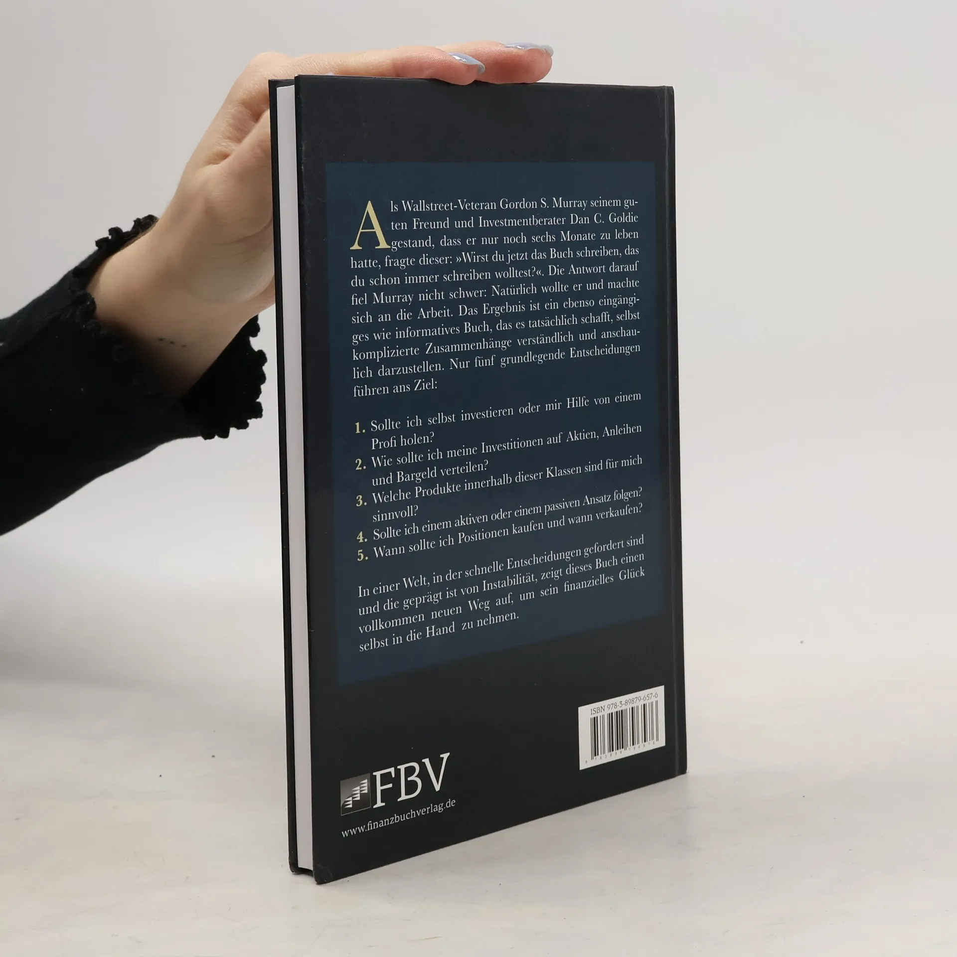 Als Wallstreet-Veteran Gordon Murray seinem guten Freund und Investmentberater Dan Goldie gestand, dass er nur noch sechs Monate zu leben hatte, fragte dieser: "Wirst du jetzt das Buch schreiben, das du schon immer schreiben wolltest?" Natürlich wollte er und machte sich an die Arbeit. Das Ergebnis ist ein ebenso eingängiges wie informatives Buch, das es tatsächlich schafft, selbst komplizierte Zusammenhänge verständlich und anschaulich darzustellen. Nur fünf grundlegende Entscheidungen führen zum Ziel: - Sollte ich selbst investieren oder mir Hilfe von einem Profi holen? - Wie sollte ich meine Investitionen auf Aktien, Anleihen und Bargeld verteilen? - Welche Produkte innerhalb dieser Klassen sind für mich sinnvoll? - Sollte ich einem aktiven oder einem passiven Ansatz folgen? - Wann sollte ich Positionen kaufen und wann verkaufen? In einer Welt, in der schnelle Entscheidungen gefordert sind und die geprägt ist von Instabilität, zeigt dieses Buch einen vollkommen neuen Weg auf, um sein finanzielles Glück selbst in die Hand zu nehmen. Im Januar 2011 starb Gordon Murray in Kalifornien an einem Gehirntumor.