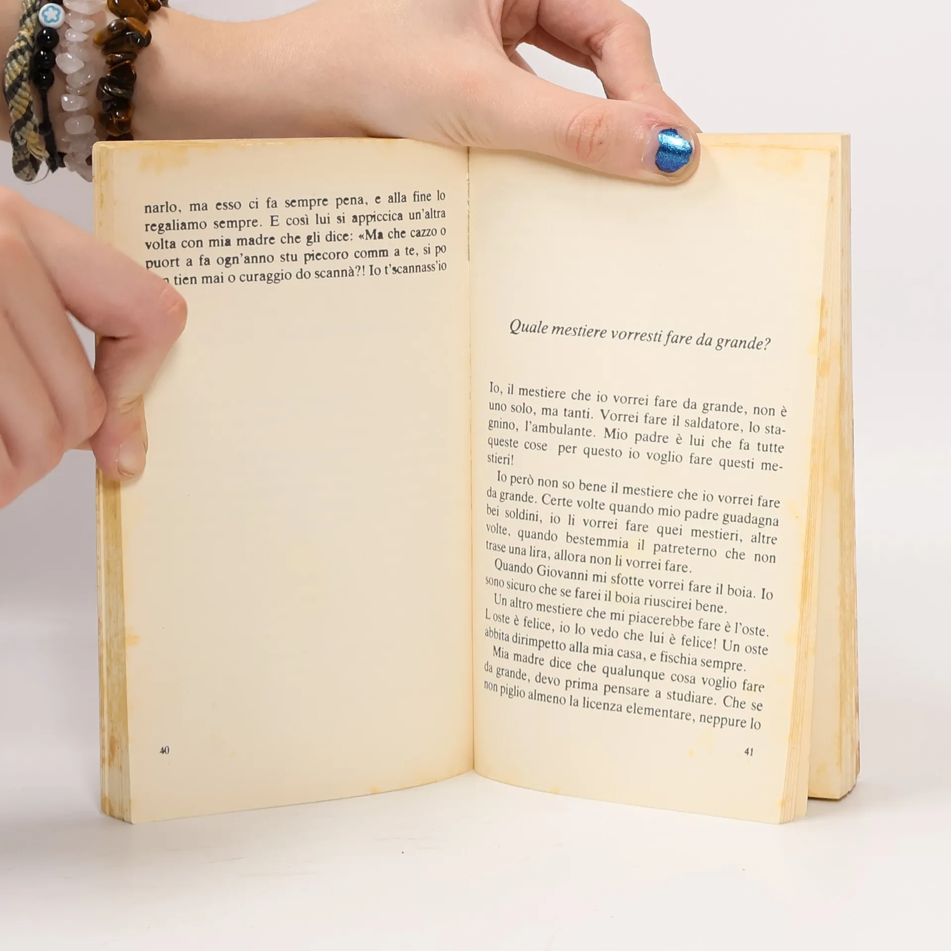 La storia racconta l'esperienza di un maestro del Nord che si trasferisce in una scuola elementare del Sud Italia, dove scopre una realtà scolastica completamente diversa attraverso i temi dei suoi piccoli alunni. Questo libro è un mix perfetto di comicità e riflessione sociale che ti fa ridere e pensare allo stesso tempo. Marcello D'Orta riesce a mostrare con ironia e tenerezza le difficoltà del sistema scolastico italiano attraverso gli occhi innocenti dei bambini. È una lettura leggera ma profonda, che ti conquista con la sua spontaneità e ti fa innamorare di questi piccoli protagonisti.