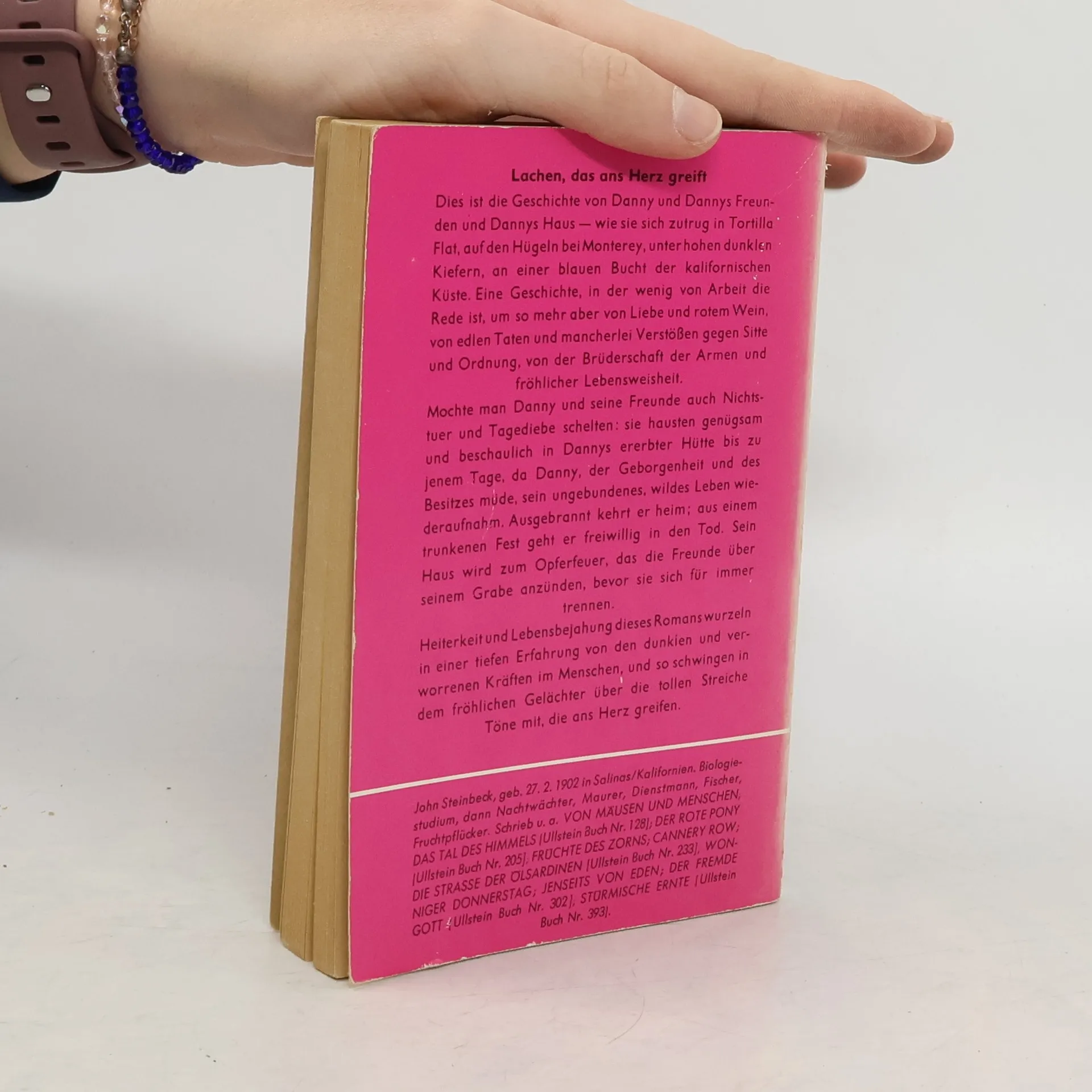 Wie einer den Verstand verliert »Steinbeck hat sich diesem deftigen und duftigen Gesindel von der Küste Kaliforniens zugewendet, weil er es liebte.« Alfred Andersch Als Danny aus dem Krieg nach Monterey zurückkehrt, erfährt er zu seiner großen Verblüffung, daß er der Erbe zweier Häuser ist. Die auf ein Saufgelage folgende Feuersbrunst reduziert seinen Besitz jedoch schnell auf die Hälfte. In der übriggebliebenen Behausung residieren außer ihm schließlich fünf weitere »Obdachlose«, u. a. der »Pirat« mit seinen fünf Hunden. Fröhlich leben die Freunde bei Wein, Weib und Gesang in den Tag hinein und warten auf »das tägliche Wunder des Essens«, dem sie allerdings mit viel List und Tücke kräftig nachhelfen müssen. Das Leben könnte , so schön sein. Doch eines Tages gerät Danny ins Brüten und fängt ganz augenscheinlich an, den Verstand zu verlieren ...