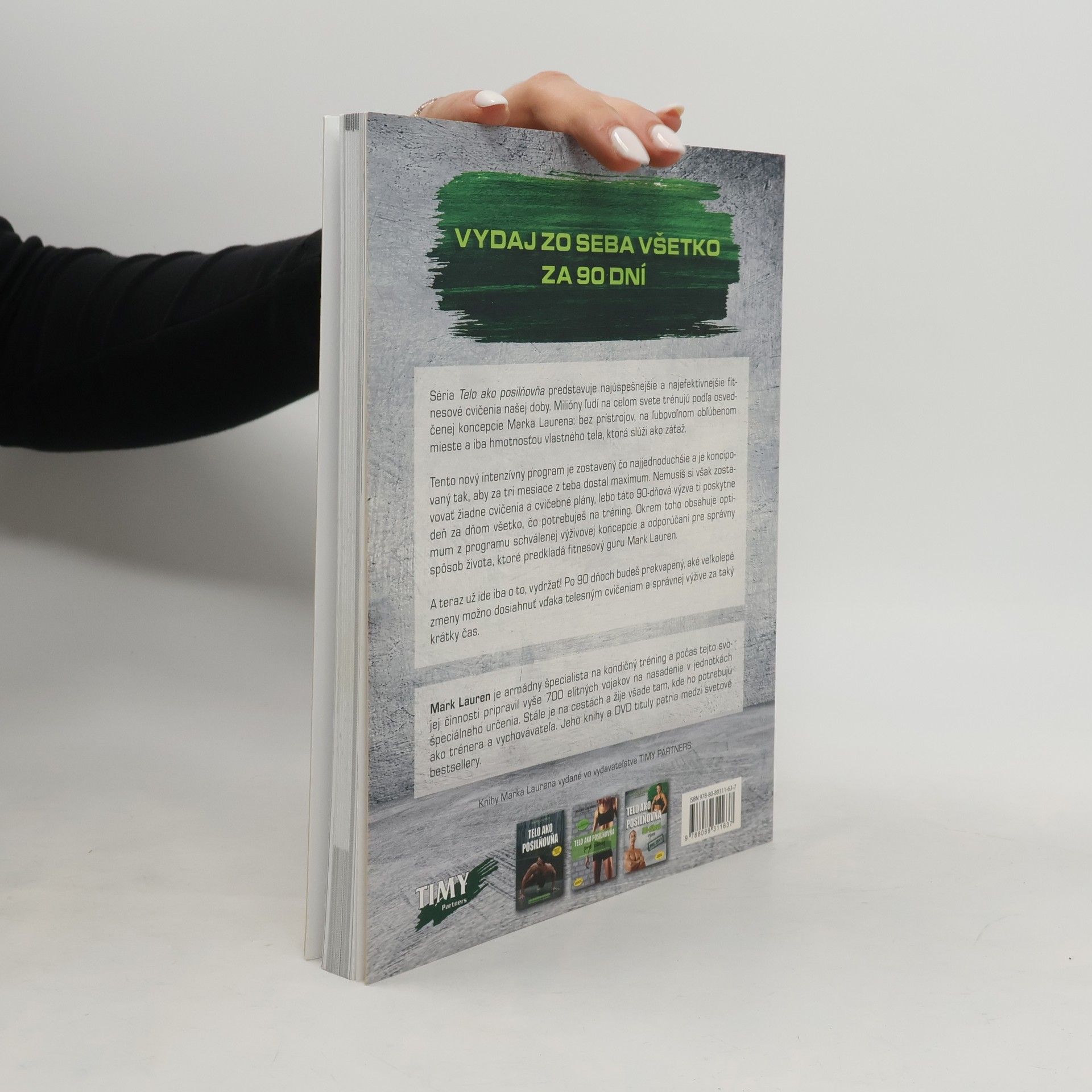 Pretvorte svoje telo do jeho najdokonalejšej podoby za 90 dní! Séria Telo ako posilňovňa predstavuje najúspešnejšie a najefektívnejšie fitnesové cvičenia dneška. Milióny ľudí na celom svete trénujú podľa osvedčenej koncepcie Marka Laurena: bez prístrojov, na ľubovoľnom obľúbenom mieste a iba hmotnosťou vlastného tela, ktorá slúži ako záťaž. Tento nový intenzívny program je zostavený čo najjednoduchšie a je koncipovaný tak, aby z teba dostal za tri mesiace maximum. Nemusíš si však zostavovať žiadne cvičenia a cvičebné plány, lebo táto 90-dňová výzva ti poskytne deň za dňom všetko, čo na tréning potrebuješ. Okrem toho obsahuje optimum z programu schválenej výživovej koncepcie a odporúčaní, ktoré predkladá fitnesový guru a autor bestsellerov Mark Lauren. A teraz už ide iba o to, vydržať! Po 90 dňoch budeš prekvapený, aké veľkolepé zmeny možno dosiahnuť vďaka telesným cvičeniam a správnej výžive za taký krátky čas.