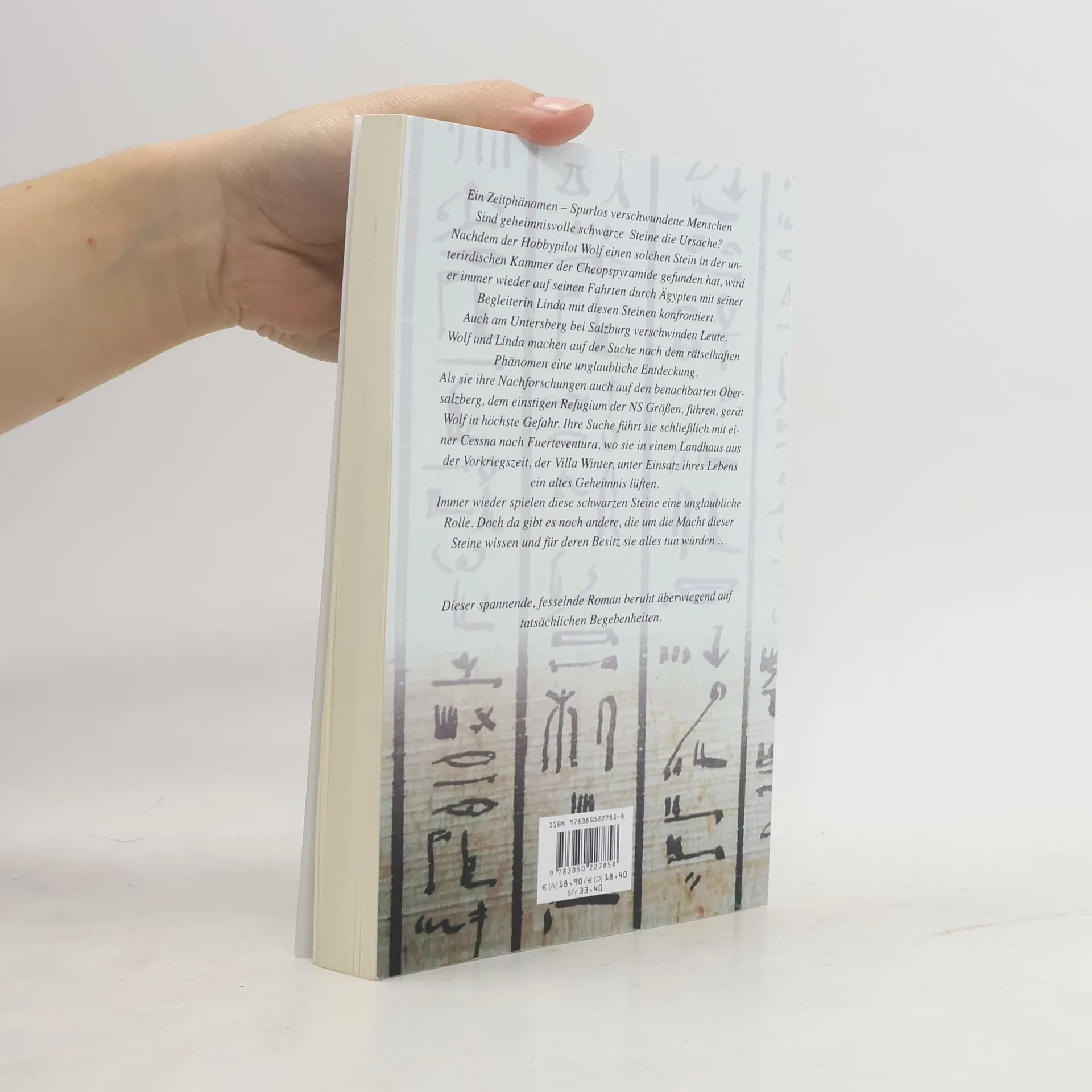 Ein Zeitphänomen. Spurlos verschwundene Menschen. Sind geheimnisvolle schwarze Steine die Ursache?Nachdem der Hobbypilot Wolf einen solchen Stein in der unterirdischen Kammer der Cheops-Pyramide gefunden hat, wird er immer wieder gemeinsam mit seiner Begleiterin Linda mit diesen Steinen konfrontiert. Wolf und Linda machen auf der Suche nach den rätselhaften Phänomenen eine unglaubliche Entdeckung.Als sie ihre Nachforschungen auch auf den benachbarten Obersalzberg, dem einstigen Refugium der NS-Größen, führen, gerät Wolf in höchste Gefahr. Ihre Suche führt sie schließlich mit einer Cessna nach Fuerteventura, wo sie in einem Landhaus aus der Vorkriegszeit, der Villa Winter, unter Einsatz ihres Lebens ein altes Geheimnis lüften …Dieser spannende, fesselnde Roman beruht überwiegend auf tatsächlichen Begebenheiten.