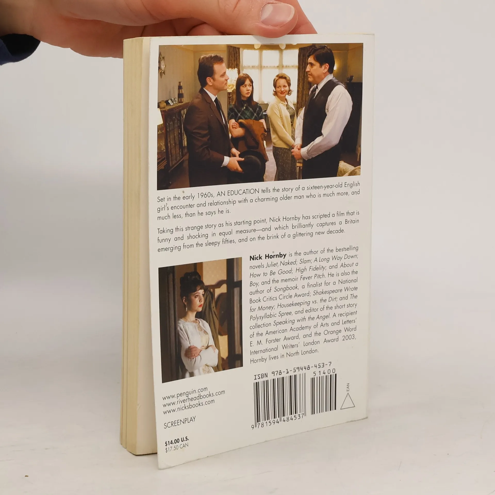 From the New York Times bestselling author, the shooting script to his award-winning film, with an original Introduction and vivid stills from the movie. Jenny is a 16-year-old girl stifled by the tedium of adolescence; she can’t wait for her sophisticated adult life to begin. One rainy day her suburban existence is upended by the arrival of David, a much older suitor who introduces her to a glittering new world of concerts, art, smoky bars, urban nightlife, and his glamorous friends, replacing her traditional education with his own version. It could be her awakening or her undoing. This edition of Hornby’s adapted screenplay, which includes stills from the film, is a perfect accompaniment to the highly anticipated movie, which stars Carey Mulligan as Jenny, Peter Sarsgaard, Emma Thompson, Dominic Cooper, and Alfred Molina. It is a must-have for fans of Hornby’s novels, featuring his signature pitch-perfect dialogue, mordant wit, and the resonant humanity of his writing.