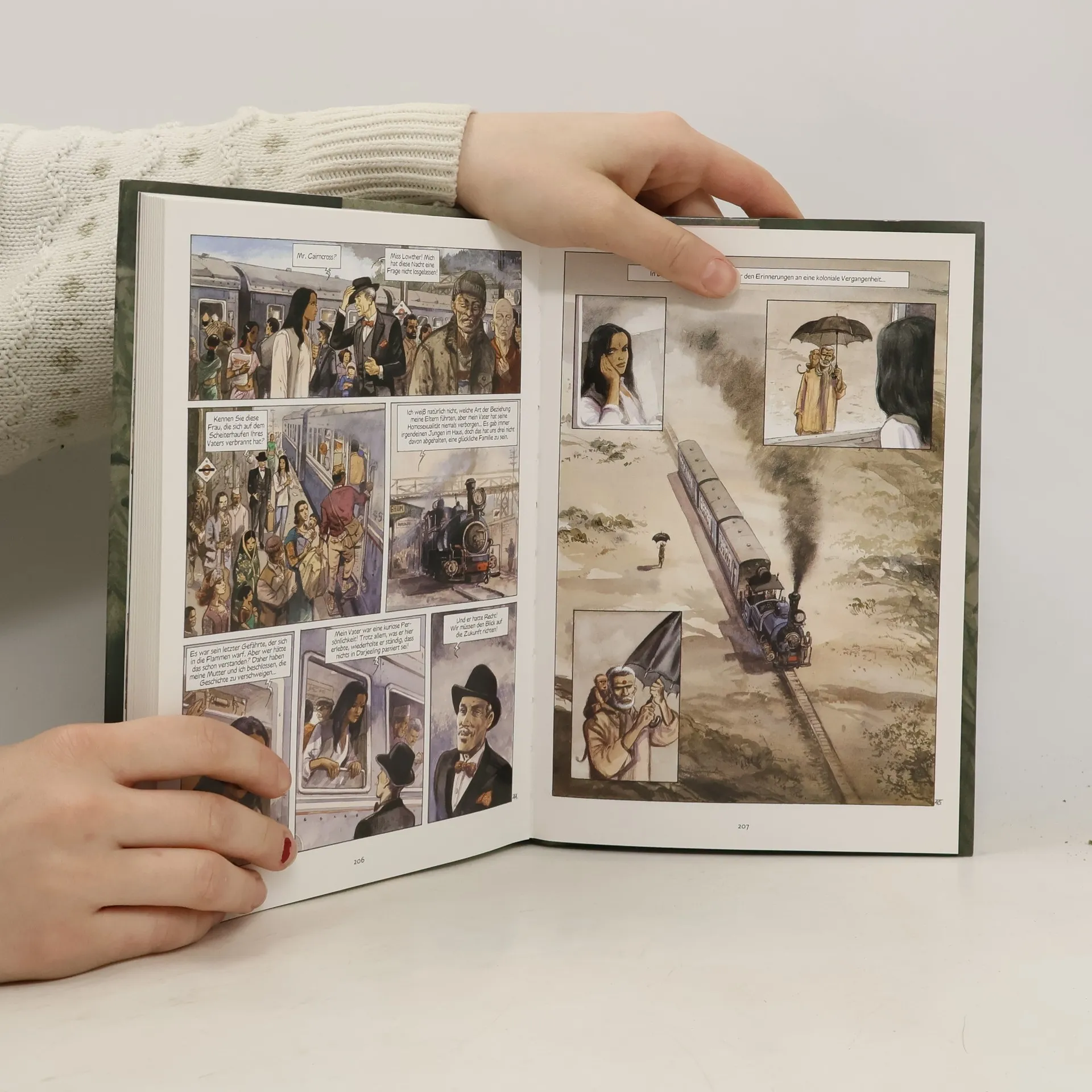 Eine grandiose und exotische Familiensaga, die mehrere Generationen umspannt. Die Geschichte von drei Frauen – Großmutter, Mutter, Enkeltochter – und ihr Leben und ihre Lieben in einem faszinierenden Land: Indien. Von der Kolonialzeit bis zur Gegenwart spannt die in traumhaft schönen Aquarellen gemalte Erzählung einen Bogen vom Indien der Maharadschas über das Indien der Hippiegeneration bis zur heutigen Zeit. EINE SAGENHAFTE REISE INS EXOTISCHE INDIEN! 'India Dreams' komplett als kleinformatiges Splitter Book (175 x 245 mm), HC mit Schutzumschlag – für Leseratten!