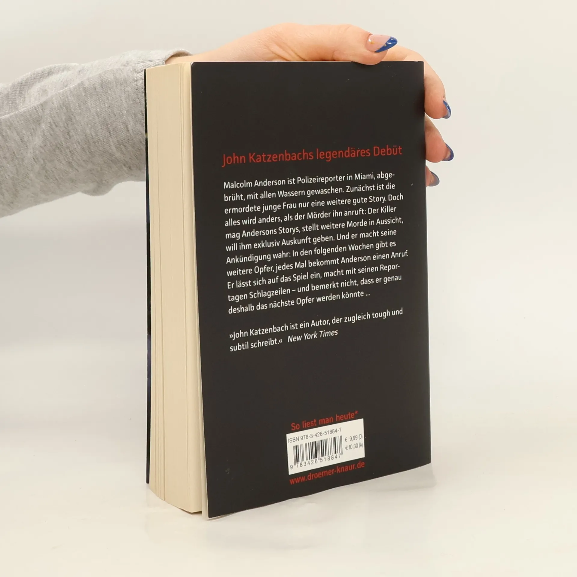 John Katzenbachs Debüt, mit dem er seinen Ruhm als Thriller-Autor begründete Malcolm Anderson ist Polizeireporter in Miami, abgebrüht, mit allen Wassern gewaschen. Zunächst ist die ermordete junge Frau nur eine weitere gute Story. Doch alles wird anders, als der Mörder ihn anruft: Der Killer mag Andersons Storys, stellt weitere Morde in Aussicht und will ihm exklusiv Auskunft geben. Und er macht seine Ankündigung wahr. In den folgenden Wochen gibt es weitere Opfer, und jedes Mal bekommt Anderson einen Anruf. Er lässt sich auf das Spiel ein, macht durch seine Reportagen Schlagzeilen, erlangt Ruhm – und bemerkt nicht, dass er genau deshalb das nächste Opfer des Killers werden könnte ... „John Katzenbach ist ein Autor, der zugleich tough und subtil schreibt.“ New York Times