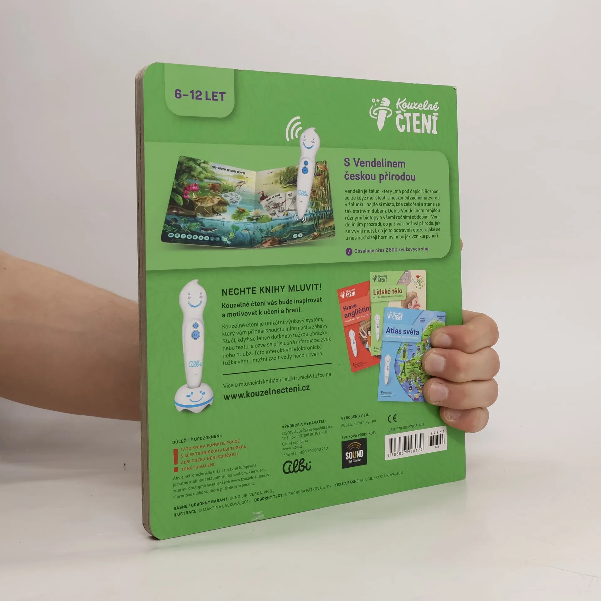 Interaktivní mluvící dětská kniha Hravá přírodověda z edice Kouzelné čtení seznámí děti od 6 let se základy přírodovědy. Knihou je provede žalud Vendelín, který se rozhodl, že když už měl to štěstí a neskončil žádnému zvířeti v žaludku, najde si místo, kde zakoření a stane se statným dubem. Děti si v knize s Vendelínem projdou různými biotopy a jejich základními složkami. Vendelín jim prozradí co je živá a neživá příroda, jak se vyvíjí motýl, co je to potravní řetězec, jaké se u nás nacházejí horniny, co se dozvíme z letokruhů stromů a spoustu dalšího. V knize Hravá přírodověda nechybí kvízy ve 3 obtížnostech. Děti si tak můžou vybrat obtížnost a ověřit si, co si z knihy zapamatovaly. Těšit se můžete také na dialogy a básničky, které děti uslyší nejen od vypravěčů, ale i od samotného Vendelína. Namluvili: Veronika Khek Kubařová, Václav Neužil a Jaroslav Plesl Ilustrace: Martina Lásková Text: Barbora Pátková, Lucie Krystlíková Odborná garance a básničky: Jiří Veska