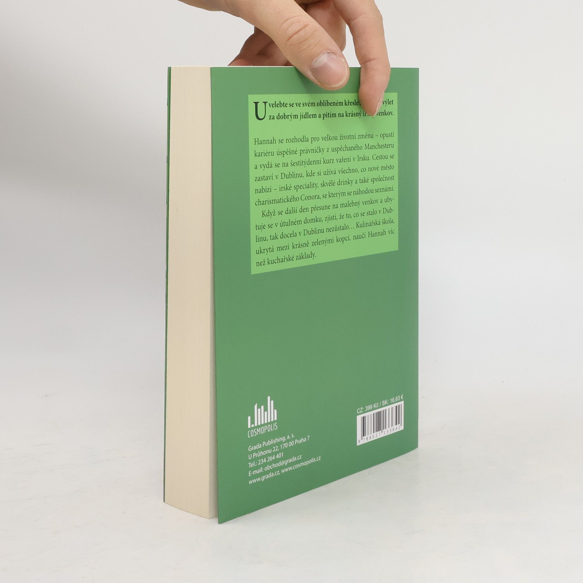 Uvelebte se v oblíbeném křesle a užijte si výlet za dobrým jídlem a pitím na krásný irský venkov. Hannah se rozhodla pro velkou životní změnu – vymění kariéru úspěšné právničky z uspěchaného Manchesteru za šestitýdenní kurz vaření v Irsku. Cestou se zastaví v Dublinu, kde si užívá všechno, co nové město nabízí – irské speciality, skvělé drinky a také společnost charismatického Conora, se kterým se náhodou seznámí. Když se další den přesune na malebný venkov a ubytuje se v útulném domku, zjistí, že to, co se stalo v Dublinu, tak docela v Dublinu nezůstalo… Kulinářská škola ukrytá mezi krásně zelenými kopci naučí Hannah víc než kuchařské základy.