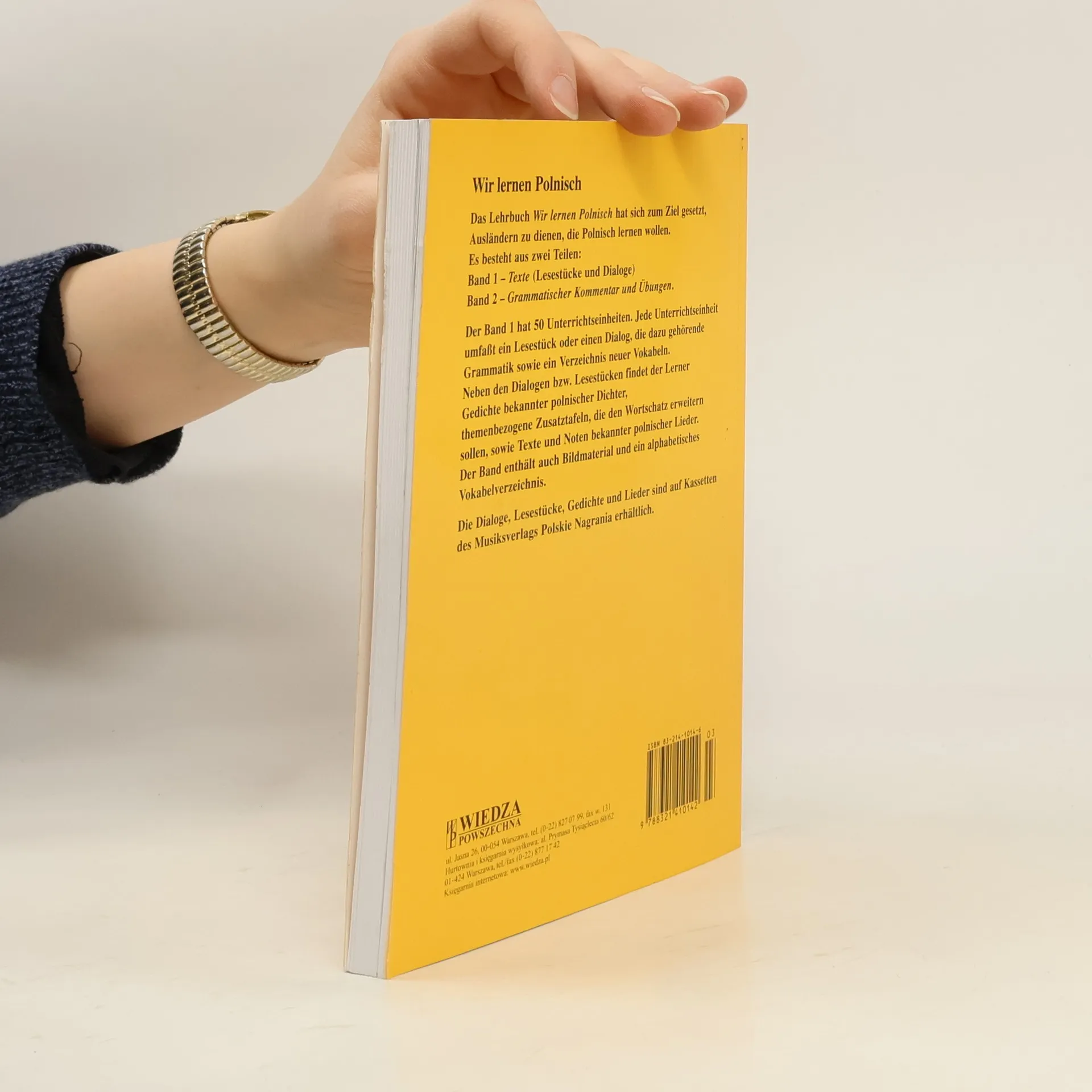 Wersja podręcznika Uczymy się polskiego dla odbiorcy niemieckojęzycznego. Tom 1 - 50 lekcji, teksty i dialogi ze słowniczkami, wiersze, dowcipy, pieśni i piosenki z nutami, indeks 2000 wyrazów. Podstawowe słownictwo i struktury gramatyczne. Tom 2 - omówienie materiału gramatycznego, wskazówki metodyczne, komentarze gramatyczne i ćwiczenia do poszczególnych lekcji z t. 1, klucz do ćwiczeń. Dla lektorów prowadzących kursy języka polskiego dla cudzoziemców, jak też do nauki samodzielnej.