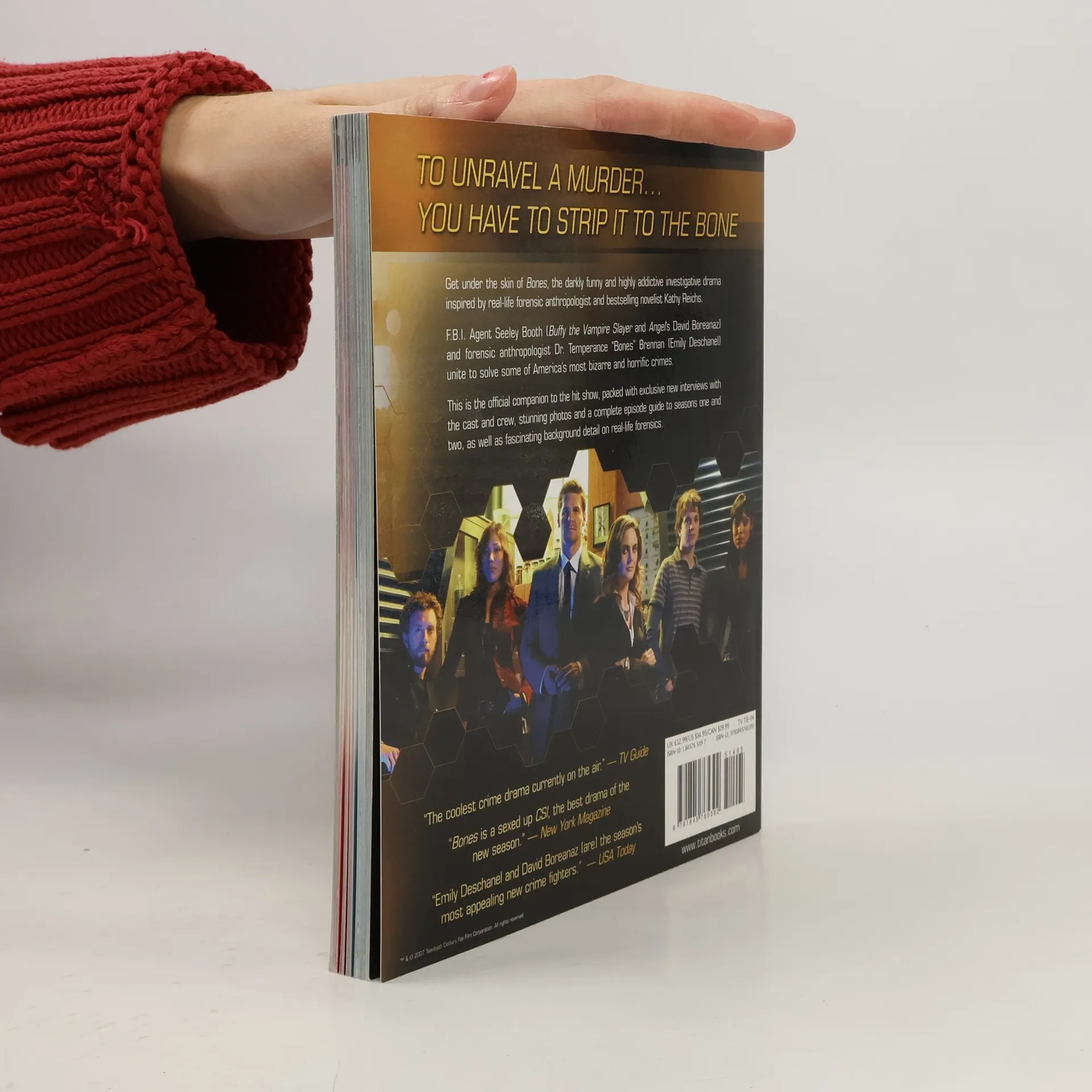 Dr Temperance Brennan (Emily Deschanel) is a forensic anthropologist who is often teamed with Special Agent Seeley Booth (David Boreanaz), piecing together the clues left behind in murder victims' bones. This book also includes details on real-life forensics.