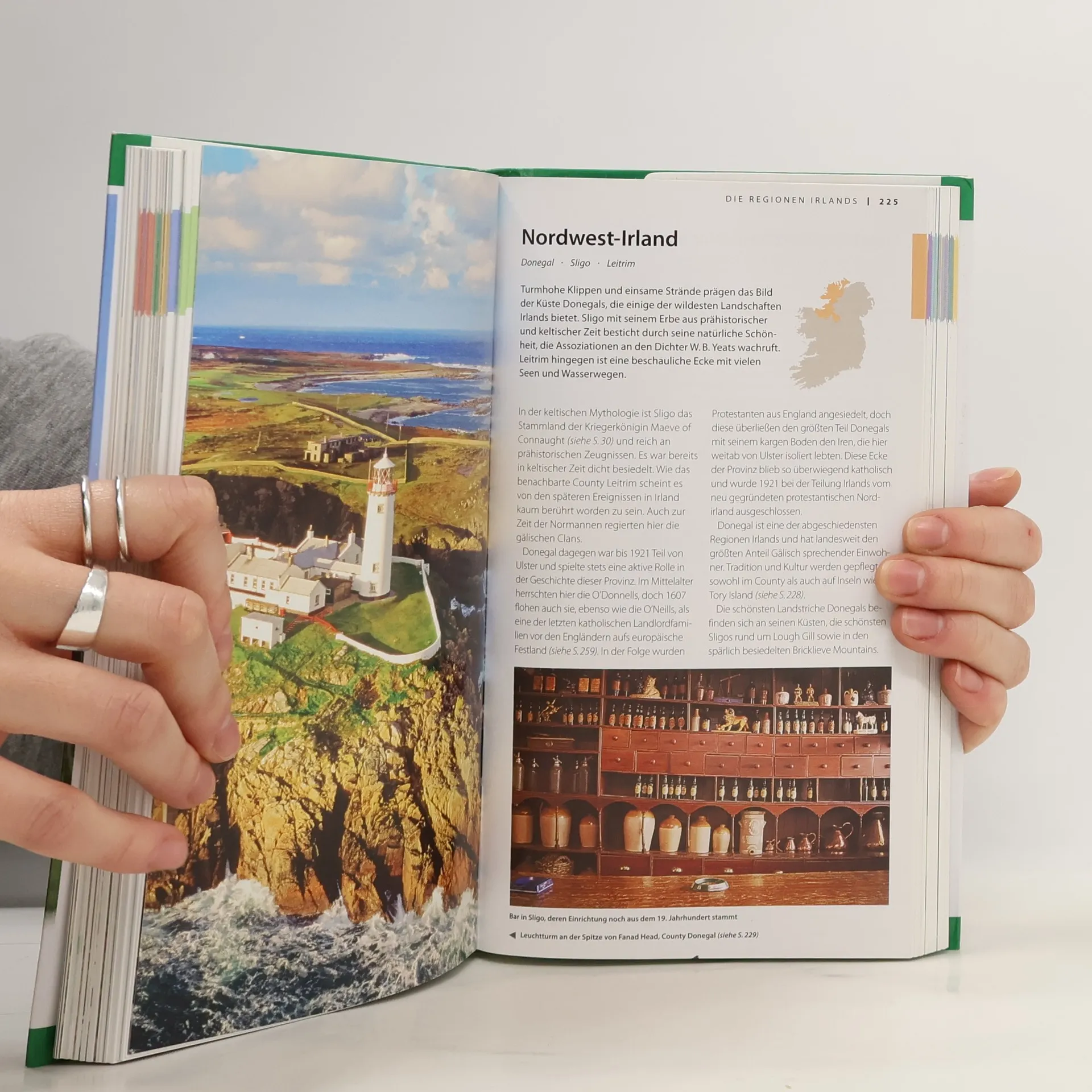 Verwunschene Ruinen, zauberhafte Cottages und Poesie, die in der Luft liegt – Irland verspricht einen ganz besonderen Sehnsuchtsurlaub! Die abwechslungsreiche Landschaft, von Sümpfen bis zu Felseninseln, fasziniert Reisende ebenso wie die berühmten irischen Pubs, die Musik, die Literatur und das keltische Erbe. Sie finden im Vis-à-Vis Irland für jedes Vorhaben alle Informationen, die Sie benötigen: vom Hotel mit antiken Möbeln im Killarney National Park über das bekannteste vegetarische Restaurant Irlands in Cork bis zu den besten Pubs im ganzen Land. Der Hauptstadt Dublin ist ein 68-seitiges Kapitel inklusive detailliertem Stadtplan gewidmet. Viele wichtige Sehenswürdigkeiten wie Trinity College in Dublin, Castletown House in Kildare oder Bunratty Castle in Clare werden anhand von Aufrisszeichnungen ausführlich beschrieben. Außerdem gibt es Tipps zu Buchhandlungen und Antiquariaten, Informationen zu Pferderennen und eine Übersicht über die vielen Open-Air-Festivals. Erstmalig bei einem Reiseführer gibt es ein Mini-Kochbuch zum Herausnehmen mit typischen Gerichten des Landes. Die hervorragenden Abbildungen - exakte Schnittzeichnungen, dreidimensionale Grundrisse, Übersichtskarten und Stadtpläne - erleichtern Ihnen die Orientierung vor Ort. Der ausführliche Praxisteil bietet aktuelle Angaben zu Hotels, Restaurants, Shopping, Nachtleben und Unterhaltung sowie praktische Tipps zu Verkehrsmitteln, Öffnungszeiten und vieles mehr.