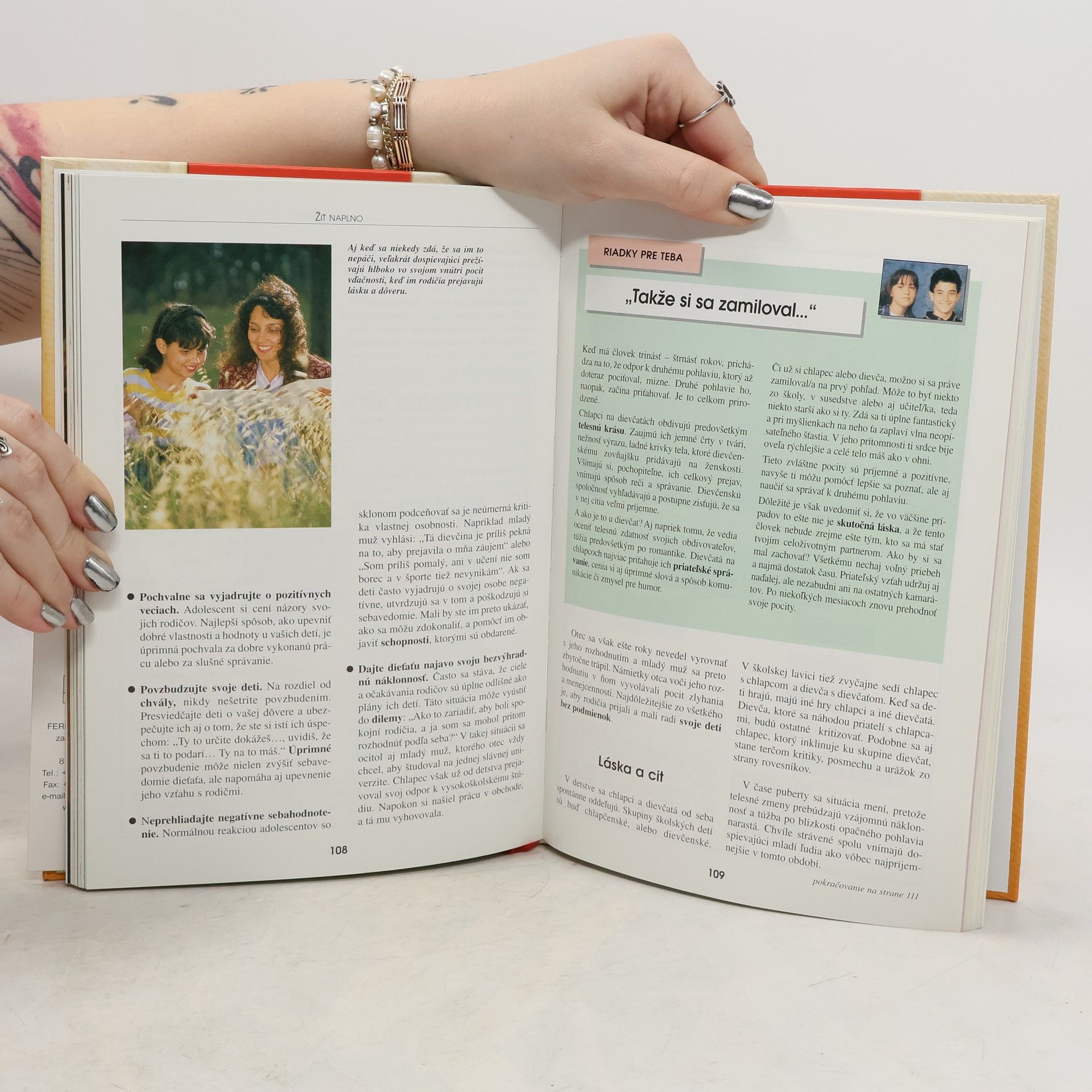 Kapitoly na témy: Dospievanie-mimoriadna životná kapitola, Štúdium a budúcnosť, V rodine, Medzi kamarátmi, Láska, city, osobnosť, O drogách, Kapitola (nielen) o sexe, Kadiaľ a kam - alebo o životných hodnotách.
