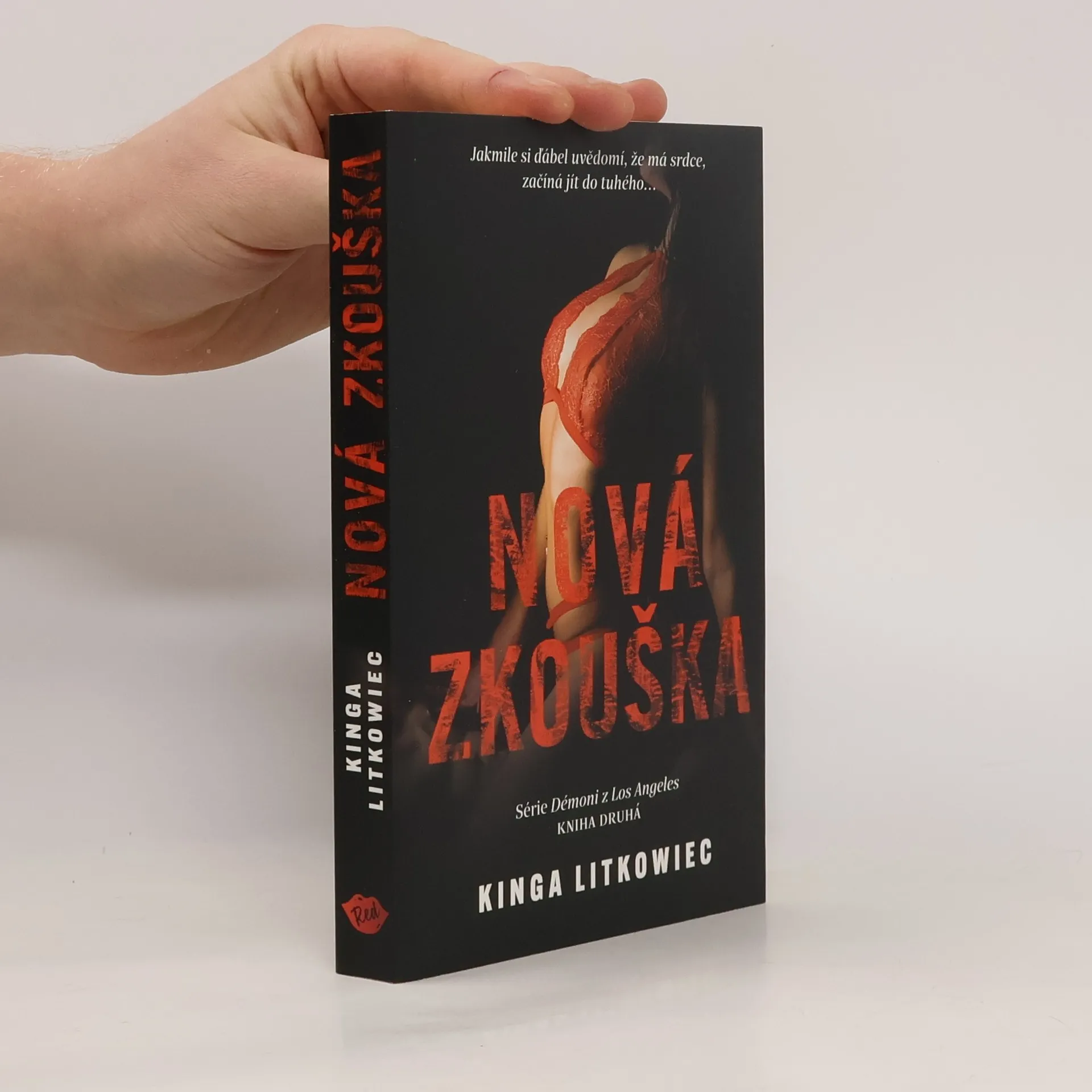 Každý člověk má srdce, ale ne každý s ním umí správně zacházet. Jessica Turner se pomalu sžívá se situací, do které se dostala. Vzniká otázka, jestli je to opravdu tak děsivý vztah, který se dá vydržet jen s největším sebezapřením? Skutečně Jessica jen plní příkazy svého trýznitele, aby ji už konečně propustil? Dohoda, kterou mladá žena uzavřela s ďáblem v lidském těle, získává ze dne na den jinou podobu. Zjišťuje, že to, co pro ni bylo ze začátku nepřijatelné, najednou není tak děsivé, a celá tato brutální erotická hra se jí začíná líbit. Jenže proměnou neprochází jen Jessica, ale i její trýznitel. Liam O´Dire se dostává do situace, které se chtěl za každou cenu vyhnout. Díky mladé ženě ďábel opět objevil své srdce… A tak dvojice pokračuje ve hře, ale už s jinými pravidly, a také s dalšími postavami, které se do ní zapojují. Objevují se noví hráči, kteří nechtějí hrát fair play. Touží po tom, co vlastní Liam… Nová zkouška je pokračování erotického románu Kingy Litkowiec Cizí dluh“, který vyšel v r. 2020. Druhý díl série Démony Los Angeles ukazuje vztah obou hrdinů z úplně jiné perspektivy. Je to kniha akční, ale zároveň velmi smyslná, plná vášně a drsné erotiky.