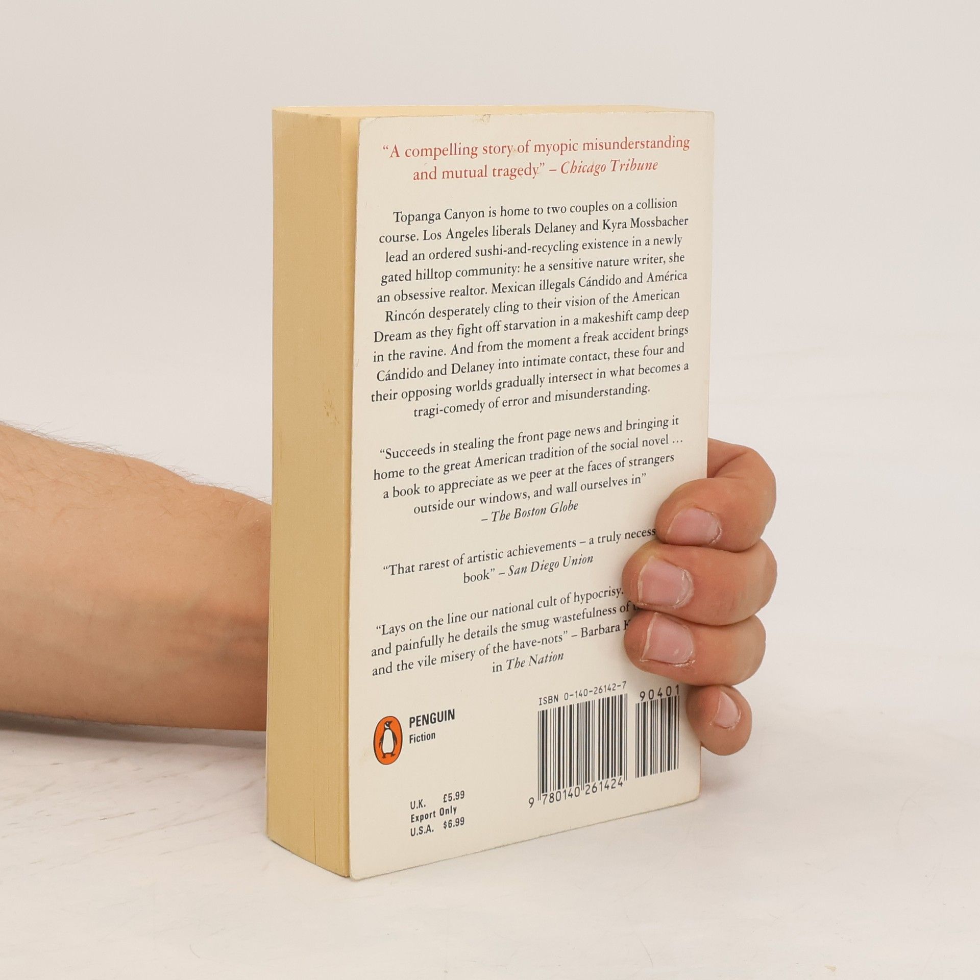 Topanga Canyon is home to two couples on a collision course. Los Angeles liberals Delaney and Kyra Mossbacher lead an ordered sushi-and-recycling existence in a newly gated hilltop community: he a sensitive nature writer, she an obsessive realtor. Mexican illegals Candido and America Rincon desperately cling to their vision of the American Dream as they fight off starvation in a makeshift camp deep in the ravine. From the moment a freak accident brings Candido and Delaney into intimate contact, these four and their opposing worlds gradually intersect in what becomes a tragicomedy of error and misunderstanding.