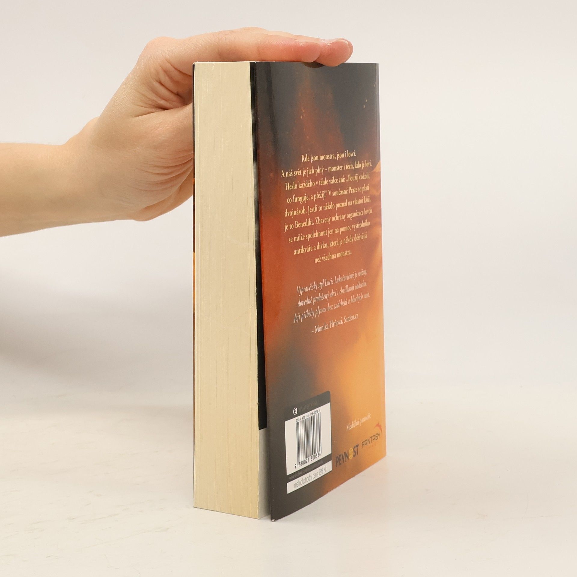 Kde jsou monstra, jsou i lovci. A náš svět je jich plný – monster i těch, kdo je loví. Heslo každého v téhle válce zní: „Použij cokoli, co funguje, a přežij!“ V současné Praze to platí dvojnásob. Jestli to někdo poznal na vlastní kůži, je to Benedikt. Zbavený ochrany organizace lovců se může spolehnout jen na pomoc výstředního antikváře a dívku, která je někdy děsivější než všechna monstra. Vypravěčský styl Lucie Lukačovičové je svižný, dovedně proložený akcí i chvilkami oddechu. Její příběhy plynou bez zádrhelů a hluchých míst. – Monika Hrňová, Sarden.cz
