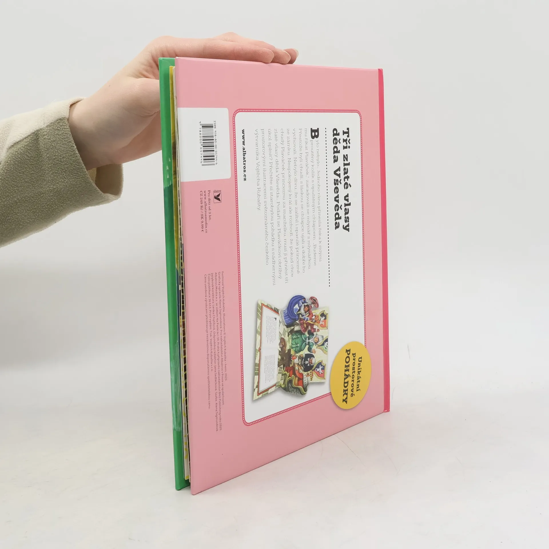 Bylo nebylo… Jednoho rána přinesla řeka k mlýnu proutěný košík s opuštěným chlapcem. "Budeme mu říkat Plaváček," zaradovali se mlynář s mlynářkou. Přestože byli chudí, s láskou se chlapce ujali a dobře ho vychovali. Nebylo divu, že se zalíbil i spanilé princezně ze zámku. Nespokojený král ale rozhodl, že pokud chce chudý Plaváček princeznu za ženu, musí jí přinést tři zlaté vlasy děda Vševěda. Podaří se Plaváčkovi obtížný úkol splnit? Začtěte se do starobylé pohádky s nádhernými prostorovými ilustracemi.