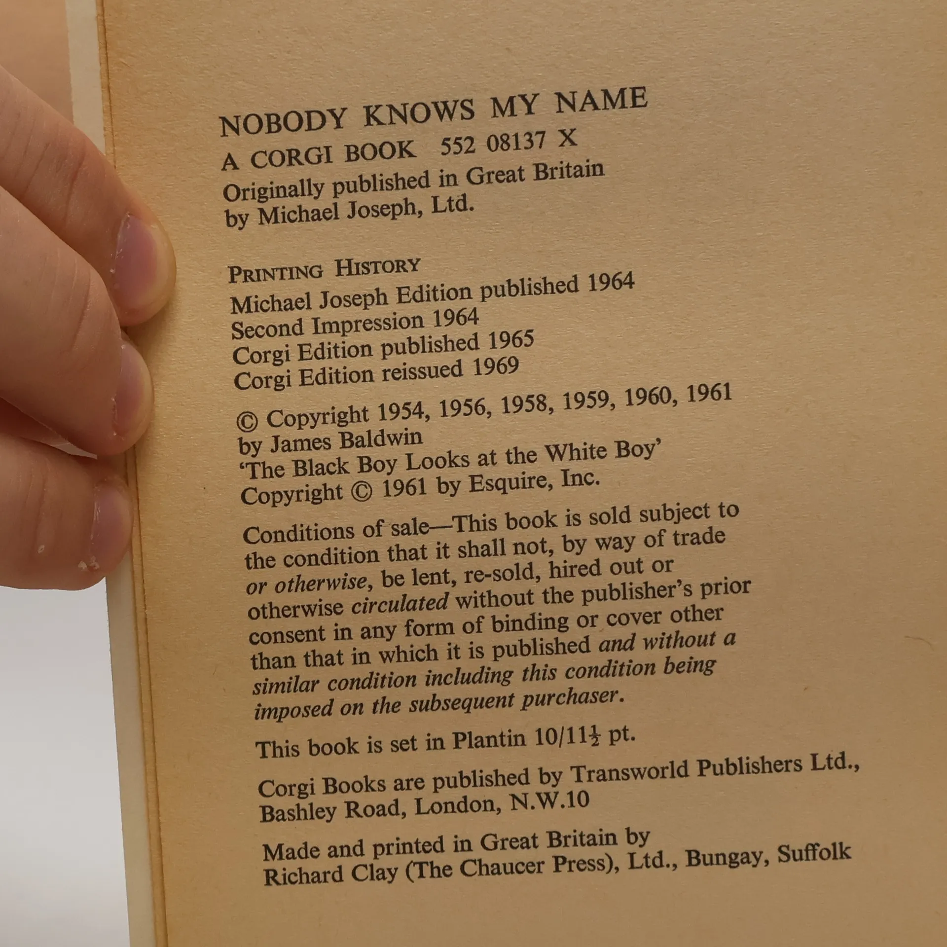 Nobody Knows My Name, James Arthur Baldwin