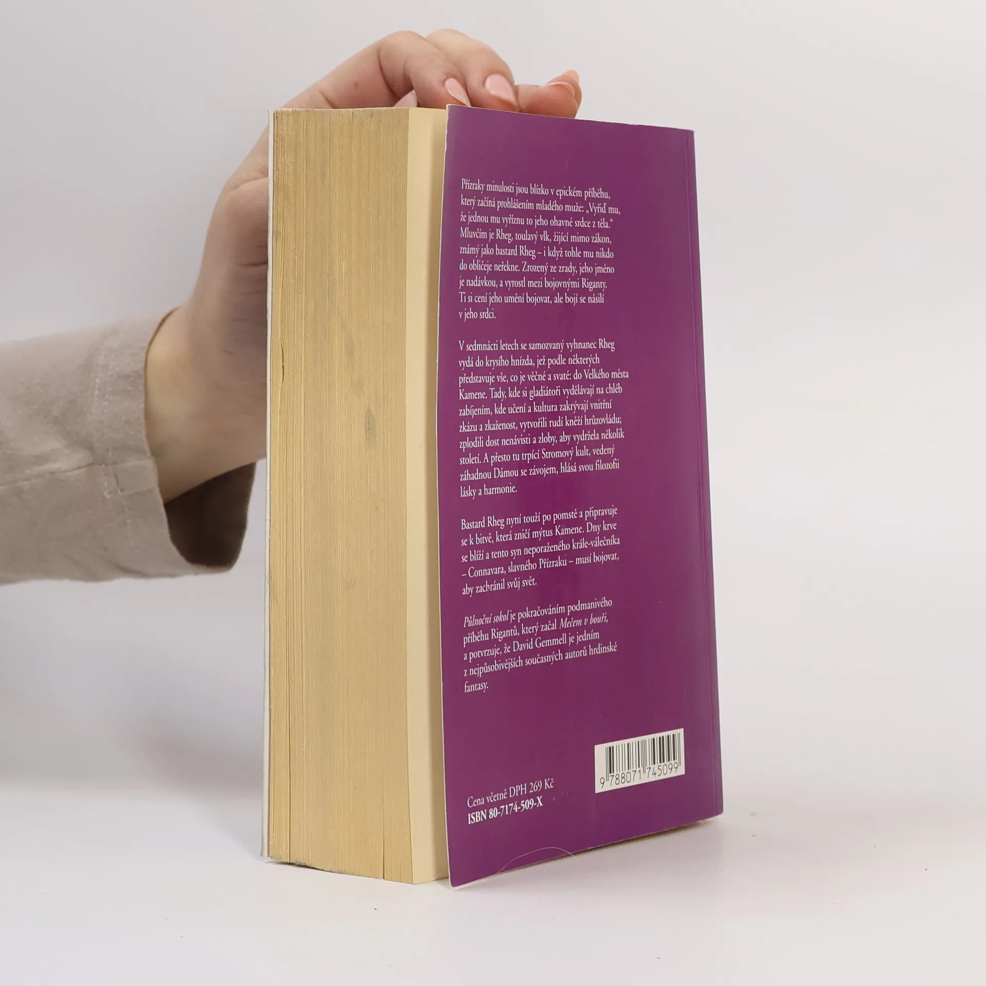 Přízraky minulosti jsou blízko v epickém příběhu, který začíná prohlášením mladého muže: "Vyřiď mu, že jednou mu vyříznu to jeho ohavné srdce z těla." Mluvčím je Rheg, toulavý vlk, žijící mimo zákon, známý jako bastard Rheg - i když tohle mu nikdo do obličeje neřekne. Zrozený ze zrady, jeho jméno je nadávkou, a vyrostl mezi bojovnými Riganty. Ti si cení jeho umění bojovat, ale bojí se násilí v jeho srdci. V sedmnácti letech se samozvaný vyhnanec Rheg vydá do krysího hnízda, jež podle některých představuje vše, co je věčné a svaté: do Velkého města Kamene. Tady, kde si gladiátoři vydělávají na chléb zabíjením, kde učení a kultura zakrývají vnitřní zkázu a zkaženost, vytvořili rudí kněží hrůzovládu; zplodili dost nenávisti a zloby, aby vydržela několik století. A přesto tu trpící Stromový kult, vedený záhadnou Dámou se závojem, hlásá svou filozofii lásky a harmonie. Bastard Rheg nyní touží po pomstě a připravuje se k bitvě, která zničí mýtus Kamene. Dny krve se blíží a tento syn neporaženého krále-válečníka - Connavara, slavného Přízraku - musí bojovat, aby zachránil svůj svět. Půlnoční sokol je pokračováním podmanivého příběhu Rigantů, který začal Mečem v bouři, a potvrzuje, že David Gemmell je jedním z nejpůsobivějších současných autorů hrdinské fantasy.